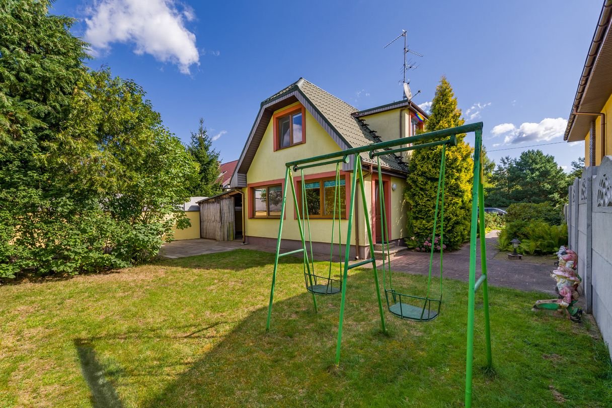 Nieruchomość położona jest w pięknej i spokojnej okolicy wśród terenów zielonych, nieopodal lasu.