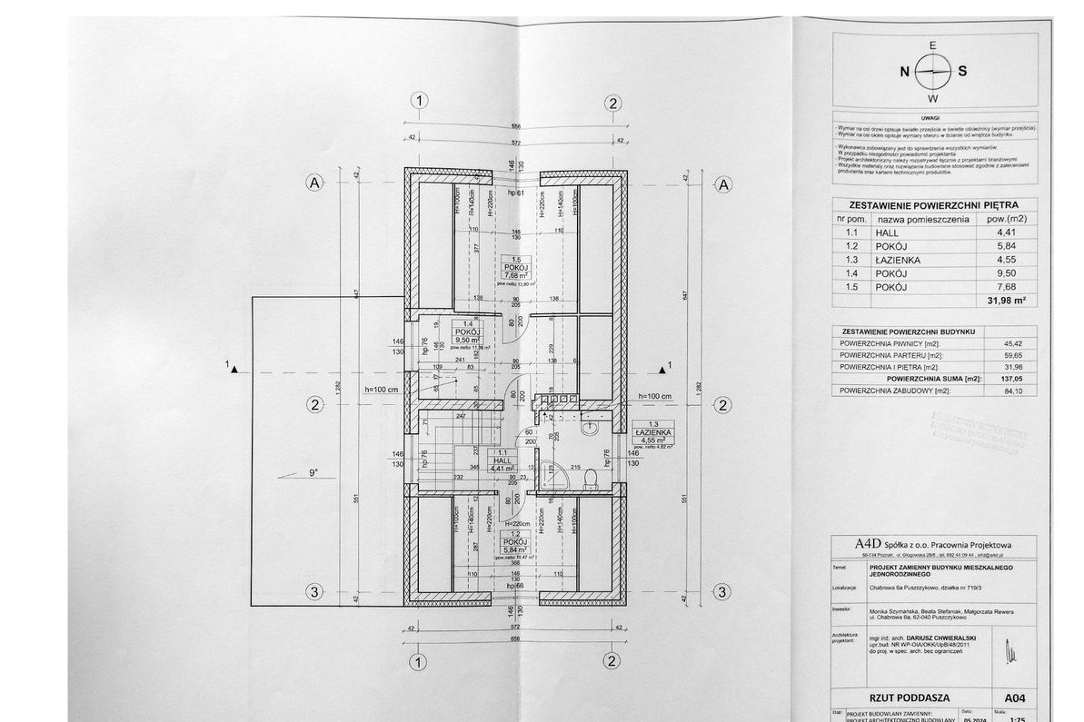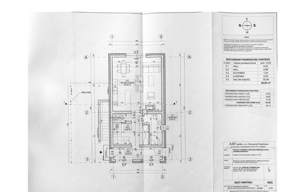 Rozmieszczenie powierzchni : Powierzchnia po podłodze wynosi ok 106 m2,powierzchnia użytkowa 106 m2 plus piwnica.