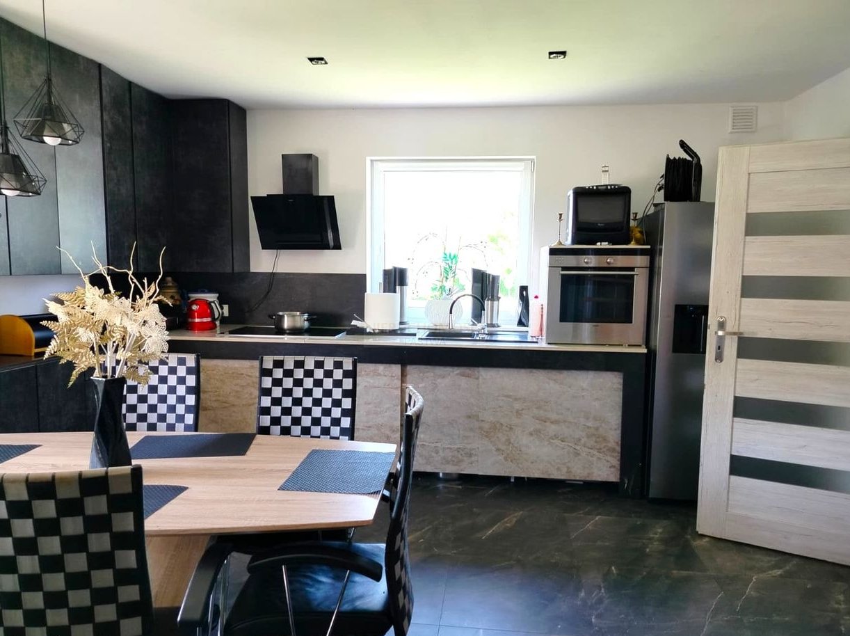 Dom wybudowany w 2021 roku, posadowiony na zagospodarowanej i ogrodzonej działce o powierzchni 991 m2.