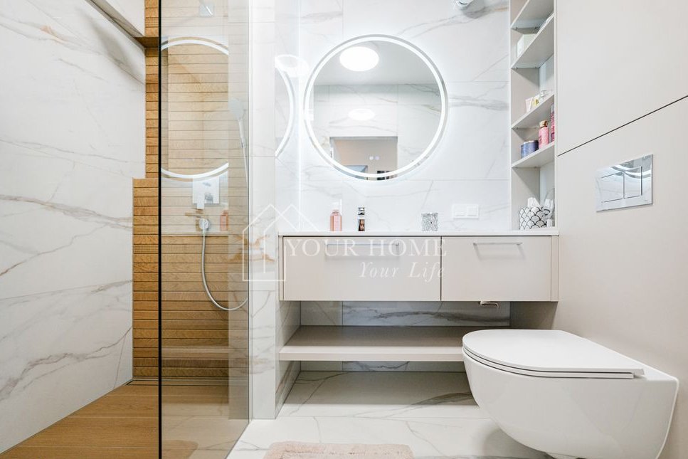 nowoczesną łazienkę wykończoną wysokiej klasy materiałami,