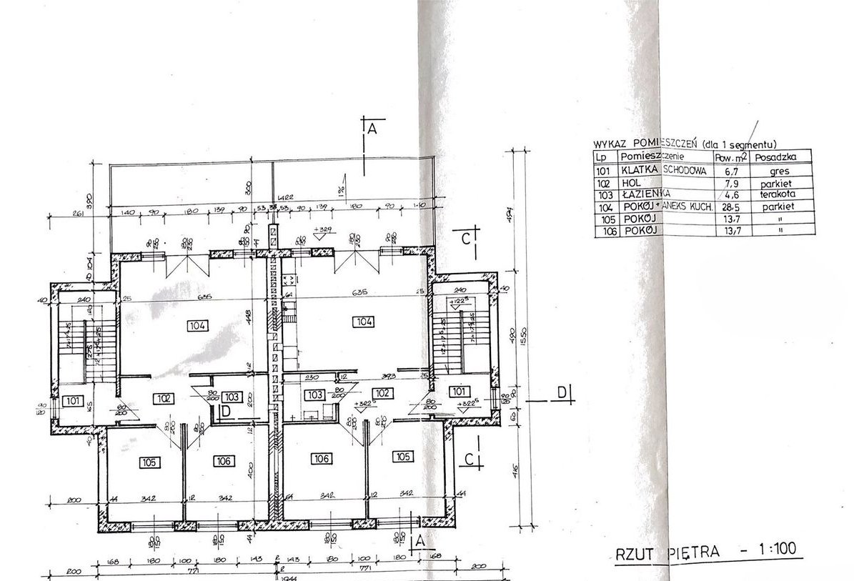 Segment 2 ma analogiczny układ: parter o powierzchni zabudowy 125 m² (wys. 3,0 m), piętro 81 m² (wys. 2,7 m) oraz strych o wysokości do 2,40 m. Działka 354 m². Cena: 1 390 000 zł.