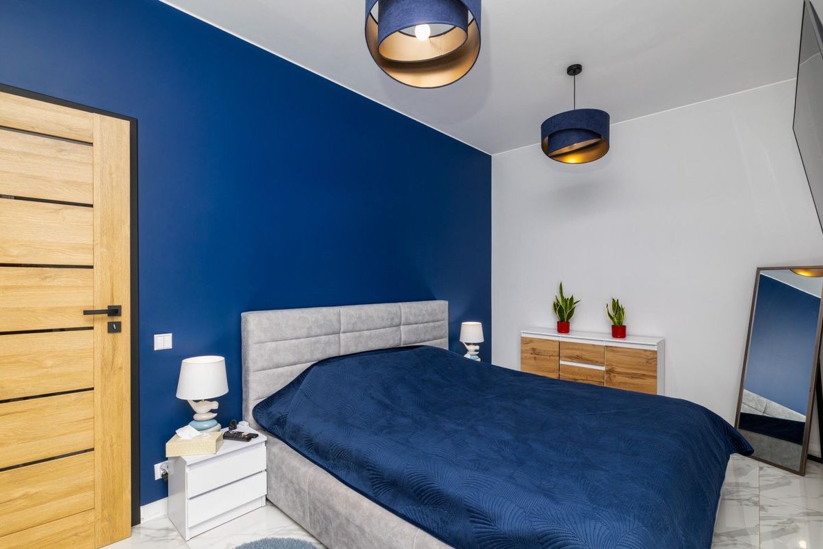 Duża sypialnia z garderobą - komfortowa przestrzeń dla domowników.