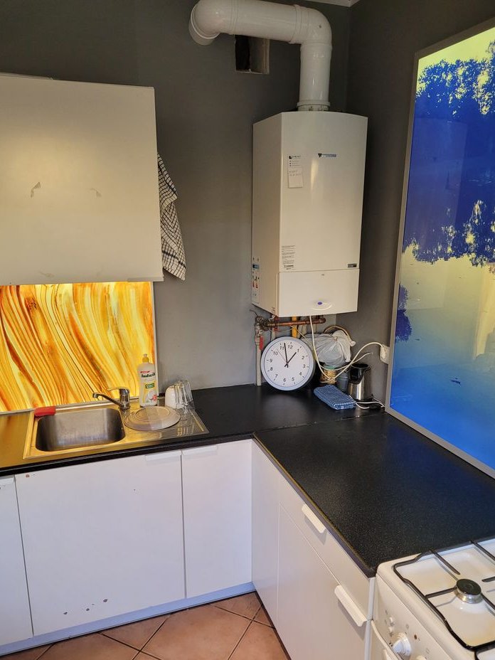 Ogrzewanie i woda - piec gazowy, dwufunkcyjny.