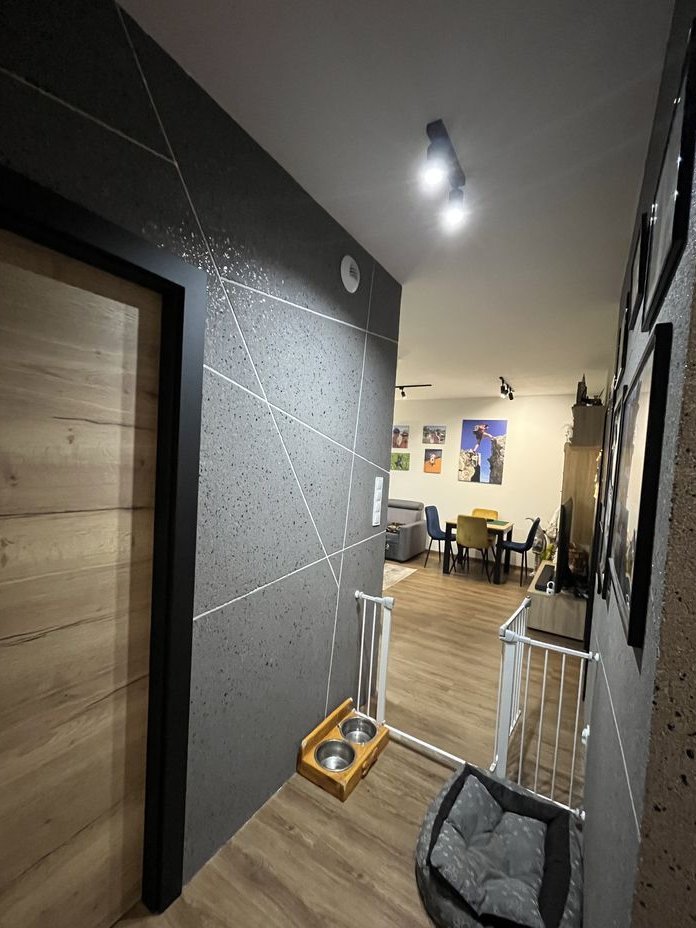 Mieszkanie położone jest na parterze i zostało wykończone według indywidualnego projektu, z wykorzystaniem wysokiej jakości materiałów.
