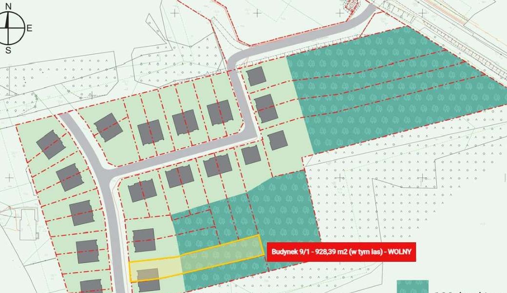 powierzchnia działki : 928,39 m2 (w tym własny 100-letni las)