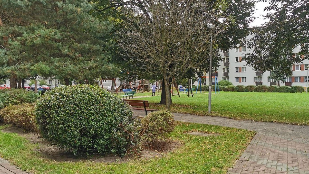 Duży plac zabaw i tereny zielone bezpośrednio przy budynku