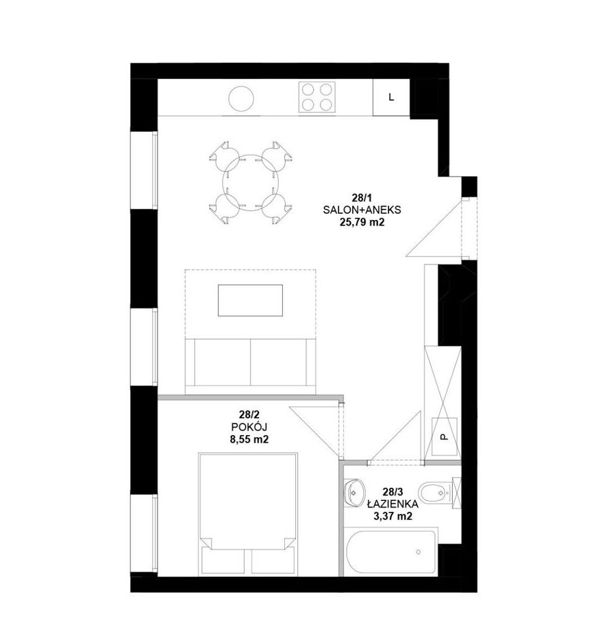 - Pokoju z aneksem kuchennym,