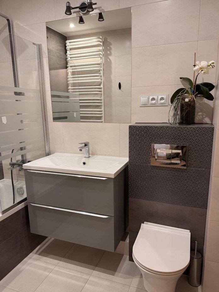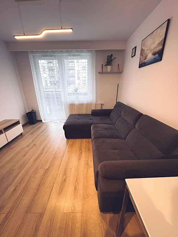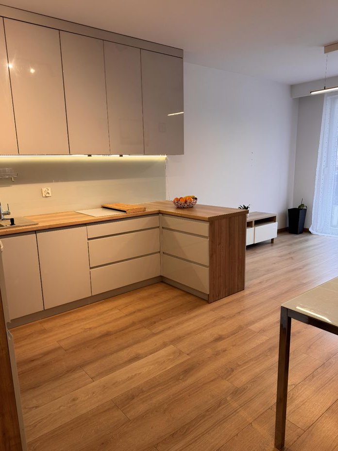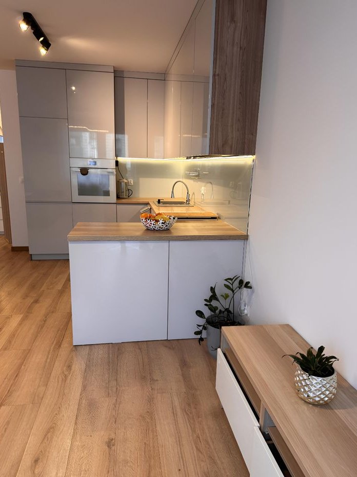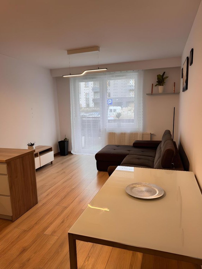 To jasne i wygodne mieszkanie o powierzchni 61 m² znajduje się na parterze nowoczesnego bloku z 2018 roku we Wrocławiu, w spokojnej dzielnicy Psie Pole. Składa się z trzech pokoi: przestronnego salonu z dużym, funkcjonalnym aneksem kuchennym (wyposażonym w meble w zabudowie, płytę indukcyjną, piekarnik, zmywarkę i lodówkę), dwóch ustawnych sypialni z praktycznymi szafami Pax oraz nowoczesnej łazienki z meblami w zabudowie, pralką i suszarką bębnową – wszystko pod ręką, co ułatwia codzienne pranie i suszenie ubrań bez zajmowania dodatkowego miejsca.