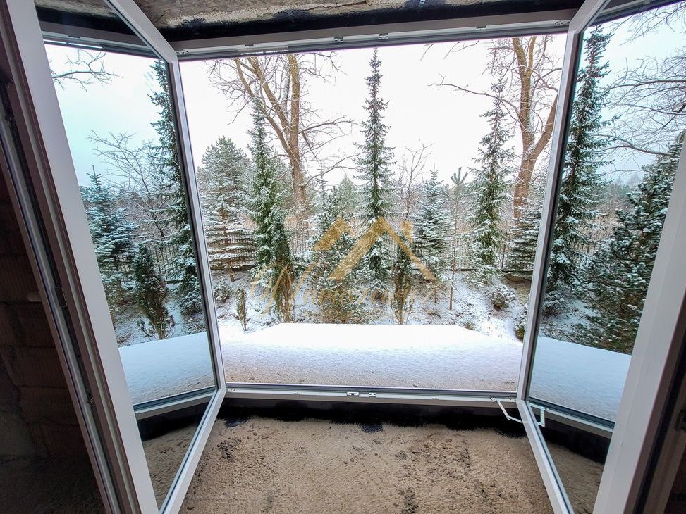 Ściany zewnętrzne są trójwarstwowe (ok. 51 cm): Porotherm 25 + styropian 15 cm + Porotherm 11,5. W środku wykonano pionowe wzmocnienia żelbetowe – ponadstandardowa stabilność i izolacja. Rozprowadzone ogrzewanie podłogowe. Stan: bardzo dobry stan surowy zamknięty.