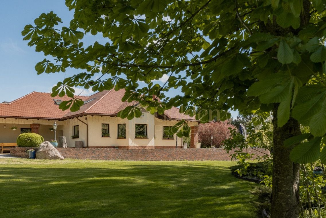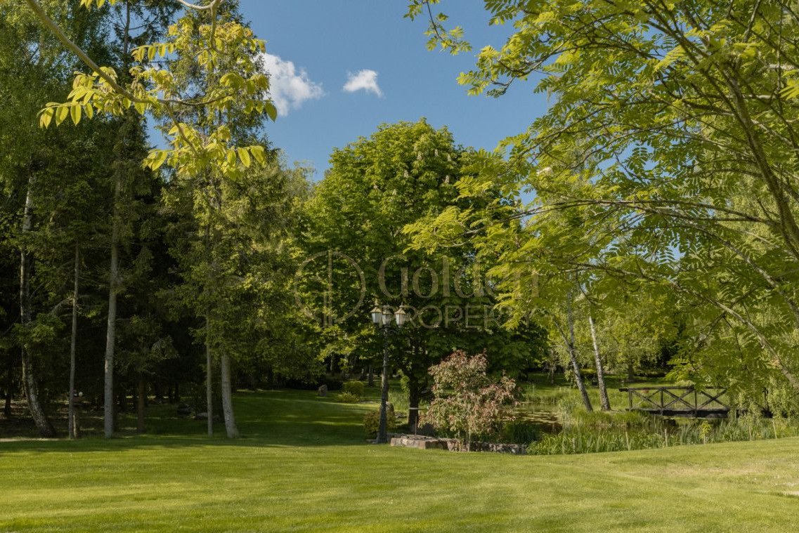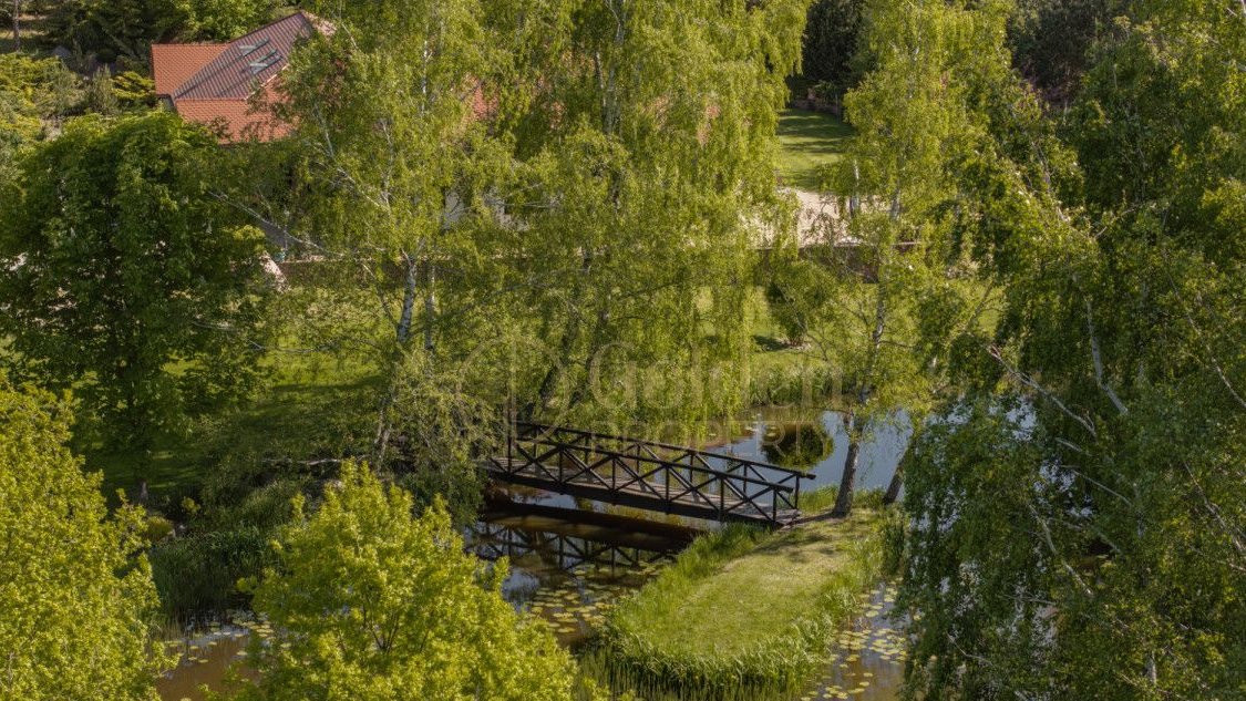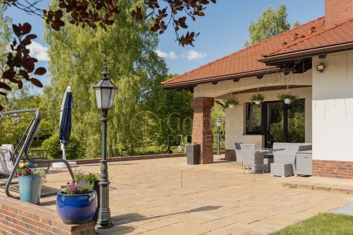 Działka o powierzchni ponad 1 hektara została zaprojektowana z myślą o relaksie i harmonii z naturą. Na jej terenie znajduje się przepływowy staw z wyspą i romantycznym mostkiem, tworzące niepowtarzalny klimat, a także własny park, który tworzą dorodne dęby, buki i brzozy.. Zadbane nasadzenia - całorocznie zielone krzewy i kwiaty - zapewniają piękno przez cały rok.