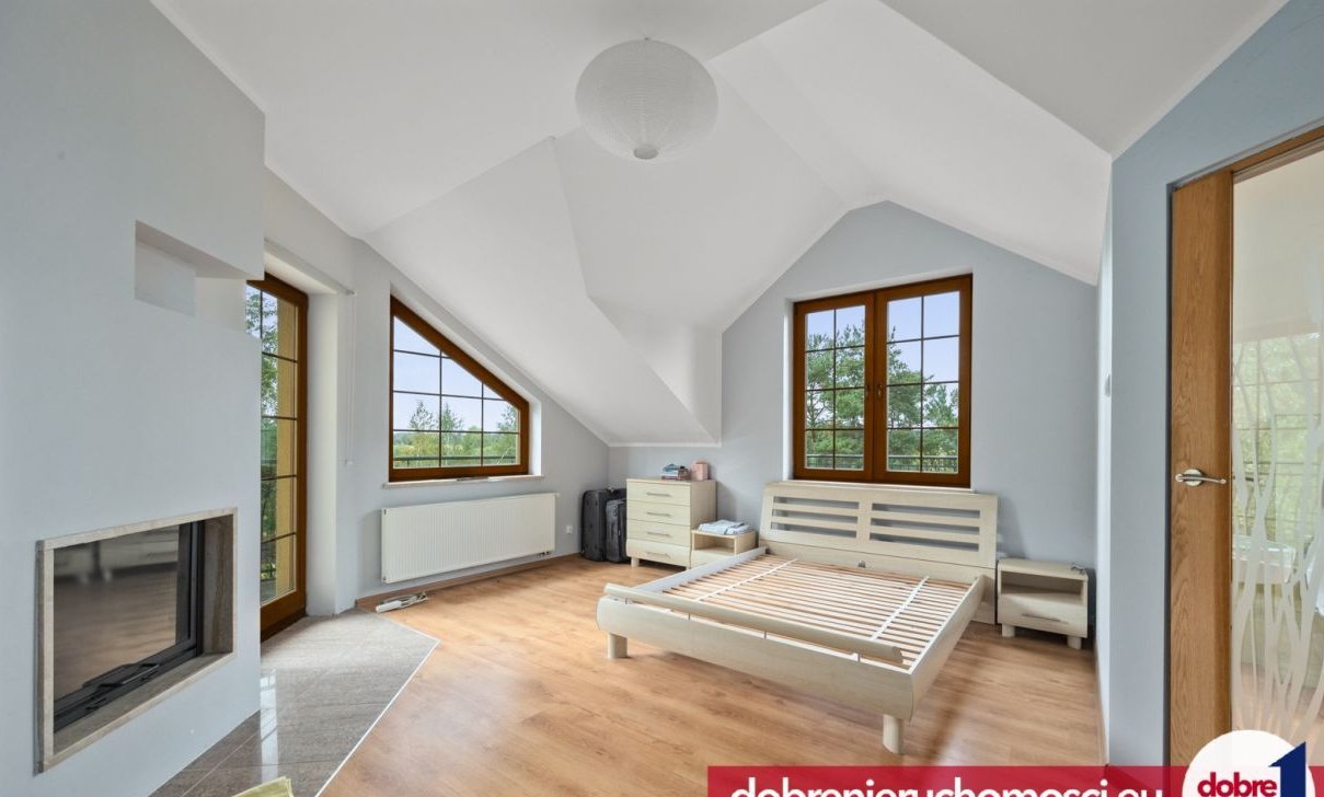( główna sypialnia z garderobą i łazienką, kominkiem i wyjściem na piękny taras widokowy)
