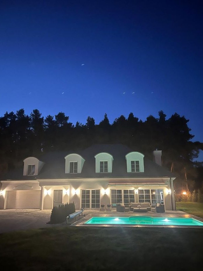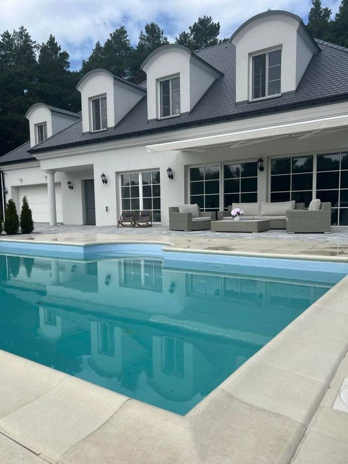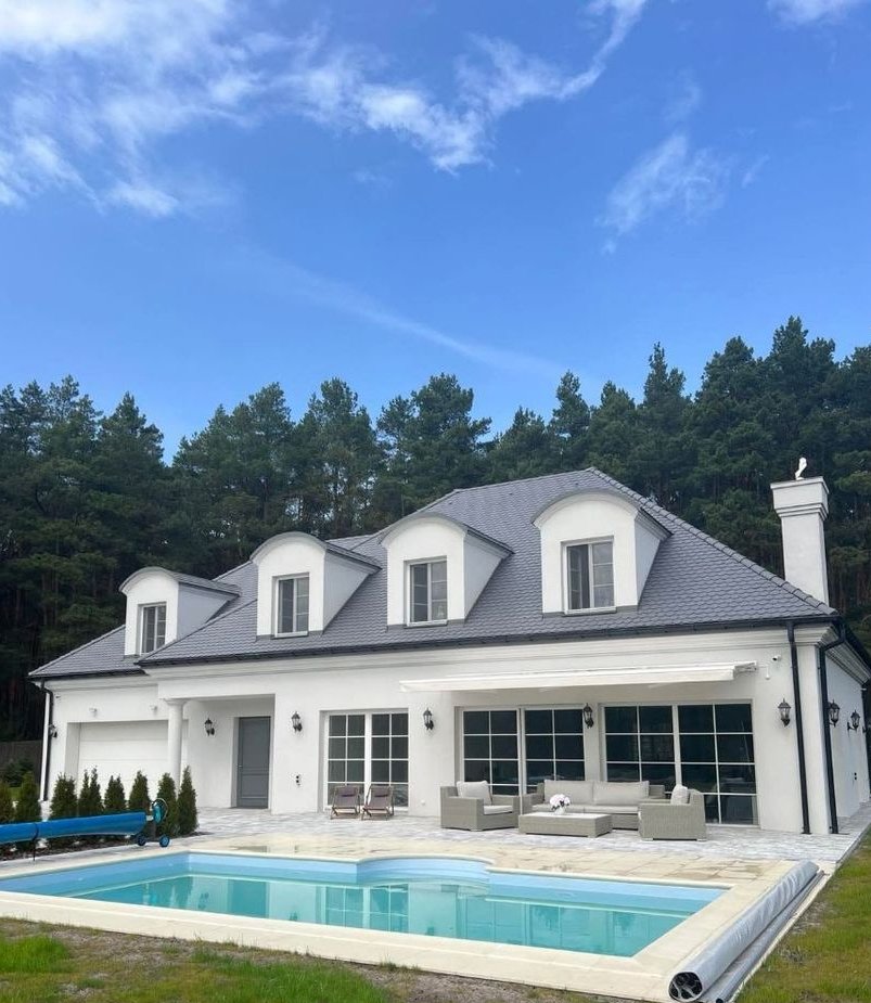 Nie współpracujemy z Agencjami Nieruchomości. Rezydencja pod Lasem oddana do użytku w maju 2024, w pięknym miejscu Kamieńczyk koło Wyszkowa na rozstaju rzek Liwiec i Bug w pobliżu Loretto- Fantastyczne miejsce do zamieszkania 50km od Warszawy, cisza i spokój, idealne miejsce dla Rodziny z dziećmi od Wyszkowa 3km. Dom wykończony pod klucz do wprowadzenia się od ręki , basen 4m/8m bez obsługowy, pompa ciepła bez obsługowa- wszelkie udogodnienia - wnętrze domu w pełni wyposażone do obejrzenia na miejscu ( brak zdjęć wnętrza ze względu na zastrzeżone prawa autorskie projektanta). Wszelkich informacji udzielę telefonicznie. Parter: Wiatrołap z garderobą, salon z kuchnią i spiżarnia z wyjściem na taras z basenem+ wyście na drugi taras od strony lasu, hol , pokój gościnny, duża łazienka dla gości, schody na piętro, pod schodami schowek, garaż na 2 pojazdy z pomieszczeniem gospodarczym. Piętro: duży holl z którego są wejścia do : duża łazienka z wanną i prysznicem dla 2 osób, pokój telewizyjny z sypialną ( można zaaranżować na dużą sypialnie z garderobą, 2 sypialnie dla gości, na końcu holu sypialnia małżeńska z widokiem na 2 strony, las i basen+ garderoba.