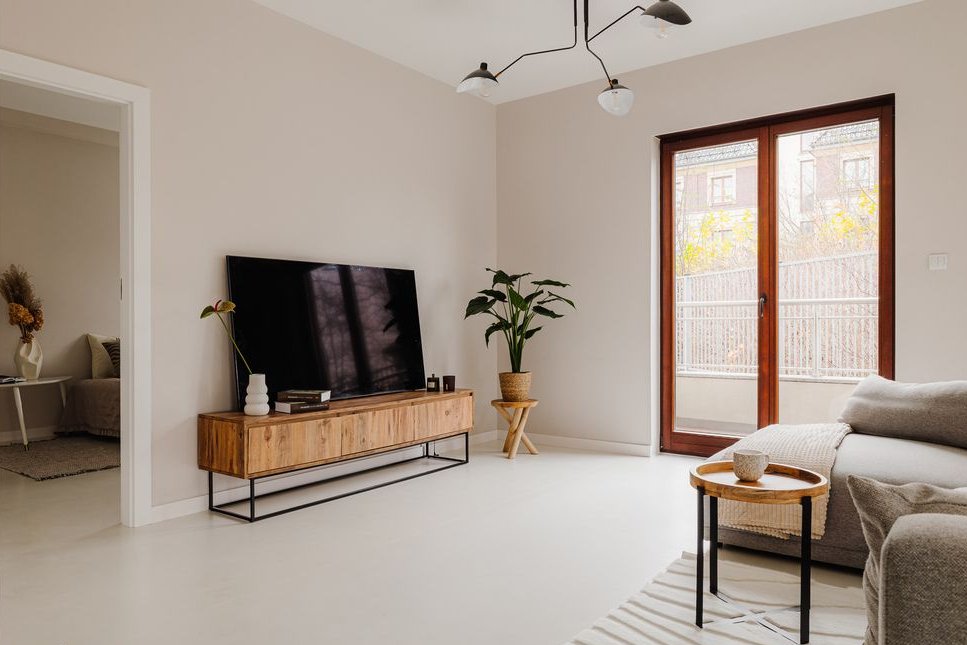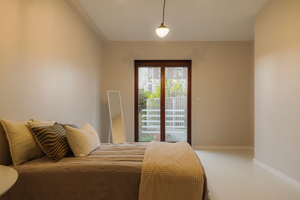 Mieszkanie znajduje się na parterze i zachwyca od pierwszych chwil swoją przestrzenią oraz harmonijnym połączeniem światła i zieleni.