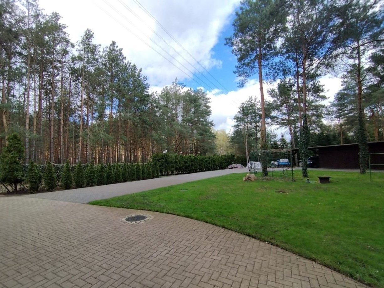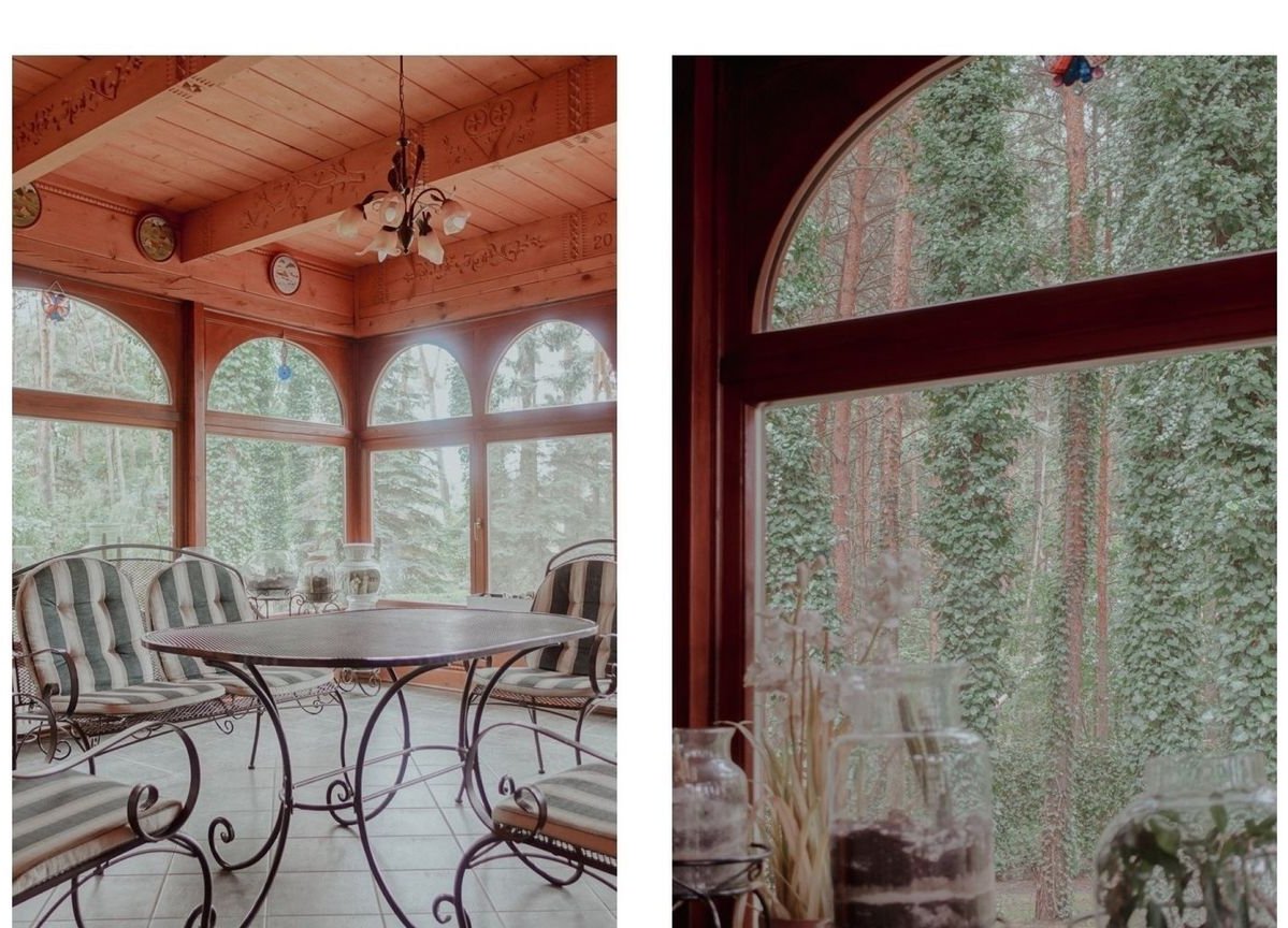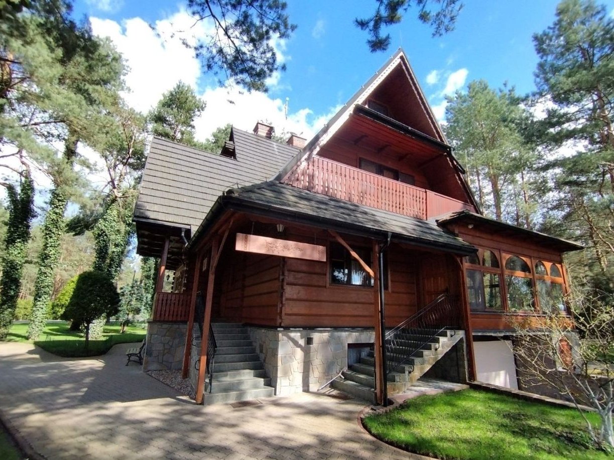 It is a private forest residence, created for those who value space, nature and quality of life over location labels.Situated in a quiet, green area north-east of Warsaw, the property offers 7,189 m² of landscaped private land, surrounded by mature trees and complete tranquility. This level of privacy and natural setting is increasingly rare, even in Poland’s most prestigious residential areas.THE RESIDENCEA solid, timber-built home (log construction) with a total living area of 295 m², designed to blend naturally into its surroundings. Warm wooden interiors, stone details and large windows create a calm, timeless atmosphere filled with natural light.The house is fully basemented and includes a private wellness and leisure zone, comprising:dry and steam sauna finished in Abachi wood,