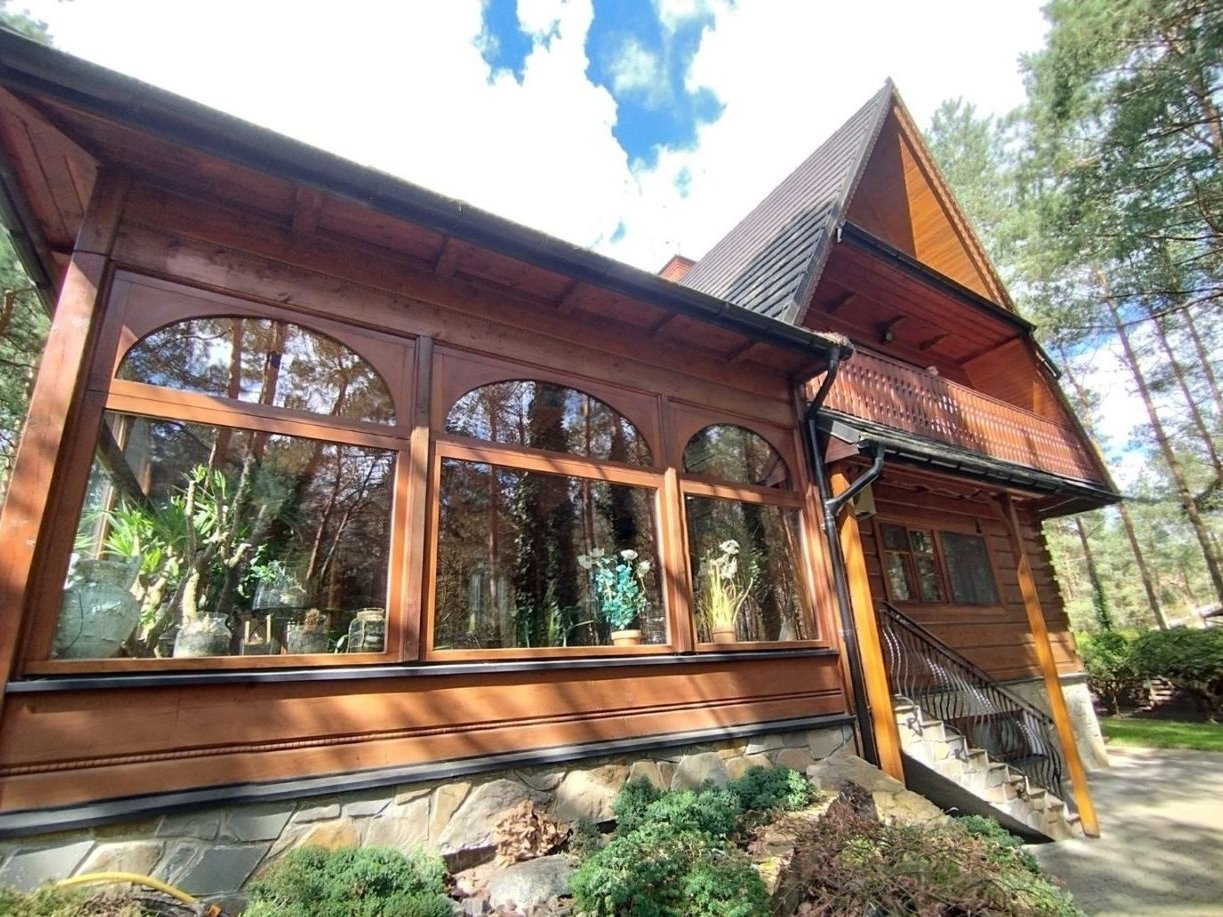 I są takie, które od pierwszej chwili dają poczucie spokoju.Ta leśna posiadłość została stworzona dla osób, które szukają czegoś więcej niż metrażu — szukają atmosfery, prywatności i jakości życia. Drewniany dom z bali, harmonijnie wpisany w starodrzew, otoczony starannie zaprojektowanym ogrodem, tworzy przestrzeń, w której naprawdę można zwolnić.DOMRezydencja o powierzchni 295 m², solidnie zbudowana, podpiwniczona, z użytkowym poddaszem. Naturalne drewno, kamień, duże przeszklenia i detale stolarki nadają wnętrzom ciepły, ponadczasowy charakter. To nie jest moda — to styl, który się nie starzeje.W części podziemnej zaprojektowano prywatną strefę relaksu:sauna sucha i mokra (Abachi),