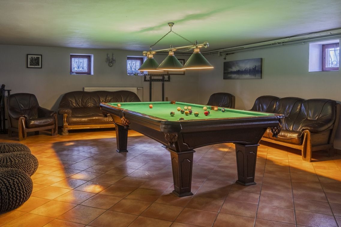 * Przestronna sala rekreacyjna z profesjonalnym stołem do bilarda,
