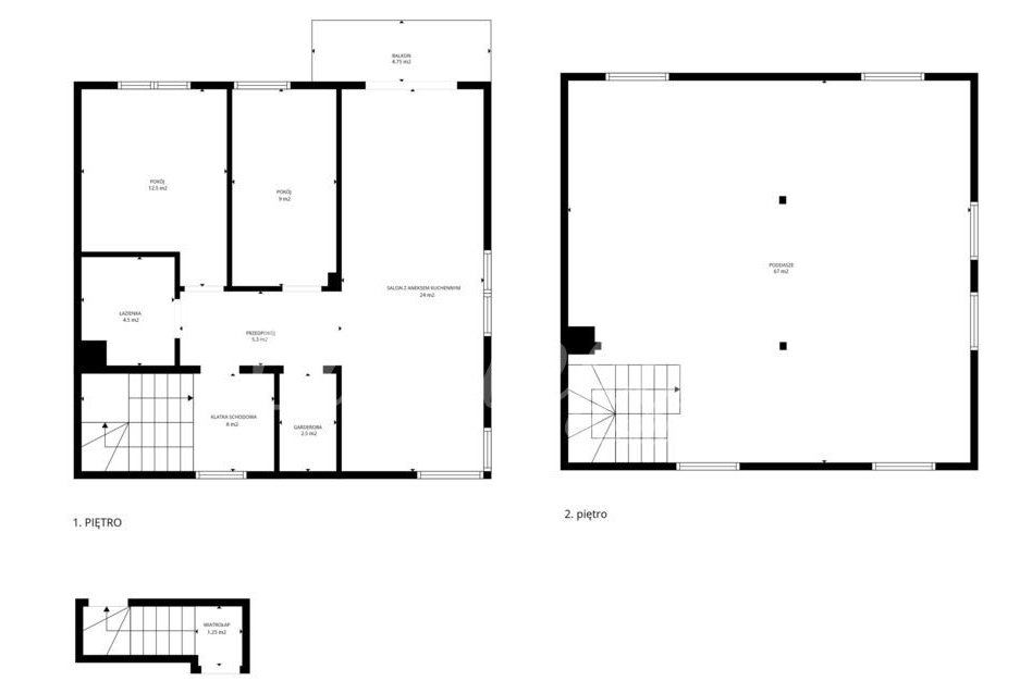 * na 2 piętrze wysokim (poddaszu nieużytkowym) z oknami znajduję się duża przestrzeń do własnej aranżacji wielkości około 51 m2, do której prowadzą regularne schody i wyprowadzone są media.