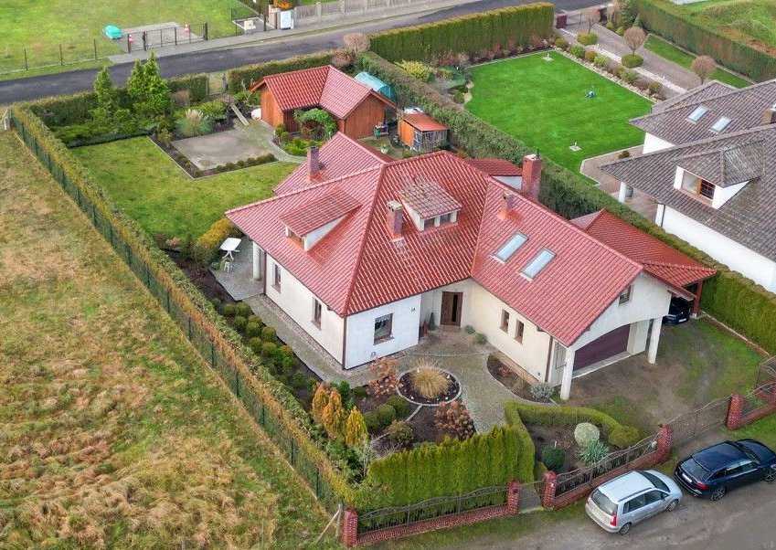 Przedmiotem sprzedaży jest dom wolnostojący, piętrowy z garażem dwustanowiskowym, wiatą na kolejne dwa samochody, oraz sporym drewnianym budynkiem gospodarczym - miejscem idealnym i zdecydowanie wystarczającym na wszelkie narzędzie czy sprzęty ogrodowe. Nieruchomość posadowiona na pięknie zagospodarowanej działce, z licznymi nasadzeniami o powierzchni 1112m2. Dom wybudowany w 2008 roku, według projektu BILBO 2 (lustrzane odbicie) w technologii tradycyjnej - murowany z bloczków betonowych na zaprawie cementowej. Budynek piętrowy, w którym parter stanowi: salon, kuchnia, hall, łazienka, pokój oraz garaż i pomieszczenie gospodarcze. Otwierając drzwi wejściowe wchodzimy do przedpokoju z pojemną szafą w zabudowie wraz z miejscem na wierzchnią odzież. Dalej wita Nas przestrzeń - sam pokój dzienny to pomieszczenie o powierzchni 33,1m2 - gdy dodamy kuchnię z jadalnią tworzy się strefa dzienna o łącznej powierzchni 58m2 - w odczuciu nawet więcej, a to wszystko dzięki częściowo otwartej antresoli i wysokości do wierzchołka dachu. Niewątpliwego uroku i klimatu całości dodaje niezabudowany kominek, który co prawda nie posiada rozprowadzenia do pozostałych pomieszczeń, ale dzięki wspomnianej otwartej przestrzeni ciepło i zapach świeżego drewna czuć w całym domu. Widna i dobrze doświetlona kuchnia w zabudowie, z szafkami na wymiar z litego drewna, wraz ze sprzętem AGD. Jeśli Nowemu Nabywcy zamarzy się nowoczesna wyspa - nic nie stoi na przeszkodzie, można ją zamontować w miejscu obecnego barku (drewniany blat). A może Ktoś marzy o urządzaniu wykwintnych przyjęć bądź spędzaniu czasu z Najbliższymi przy rodzinnym stole - jadalnia zaprasza swoją gościnnością. Na tym poziomie pokój o powierzchni 14,3m2, który może pełnić funkcję gabinetu, sypialni bądź pokoju dla Gości. Dostępna jest również łazienka (z prysznicem, umywalką, wc, bidetem). Na I poziom prowadzą murowane schody (obecnie pokryte wykładziną). Piętro to hall z antresolą, trzy niezależne sypialnie i łazienka z wanną - bez wątpienia, jeśli wystąpi taka potrzeba, możemy ten poziom uznać za strefę dostępną wyłącznie do użytku mieszkańców. Mnie osobiście urzekła obszerna antresola, miejsce gdzie można odpocząć i zatrzymać się przy ciekawej lekturze z filiżanką ulubionej kawy. Wnętrze nieruchomości zadbane, w dobrym standardzie - jednak z uwagi na mijający czas, wymagające odświeżenia, modernizacji bądź aranżacji według ulubionych trendów. Ogrzewanie własne, za pomocą 2 obiegowego pieca gazowego (plus kominek w salonie). Obecny Właściciel zadbał aby nieruchomość była jak najbardziej funkcjonalna. Pomieszczenie gospodarcze i garaż dwustanowiskowy to na pewno kolejne atuty. Dodatkowo wiata i domek narzędziowy. W tym miejscu chciałabym zwrócić Państwa uwagę, że wszystkie dachy wymienionych parceli położone są ceramiczną dachówką renomowanej firmy RuppCeramika Rubin. Budynek ocieplony, do dokończenia zostało zrobienie elewacji (puc + kolor). Działka w pełni zagospodarowana, z miejscem na wolnostostojący basen (wyłożona kostką brukową). Oferta godna polecenia również ze względu na otoczenie: spokojna, kameralna okolica z łatwym dostępem do terenów zielonych i przestrzeni rekreacyjnych, idealna dla Rodzin, Osób ceniących ciszę oraz prywatność. Wille i nowoczesne domy jednorodzinne, a także infrastruktura lokalna ulic sąsiadujących (np. Wojska Polskiego, Cicha), tworzą przyjazną i bezpieczną okolicę do zamieszkania. W odległości kilku minut od nieruchomości znajduje się m.in.: Jezioro Nowogardzkie – duży akwen z plażą, ścieżkami spacerowymi i terenami rekreacyjnymi, idealny na spacery, rower czy relaks nad wodą.