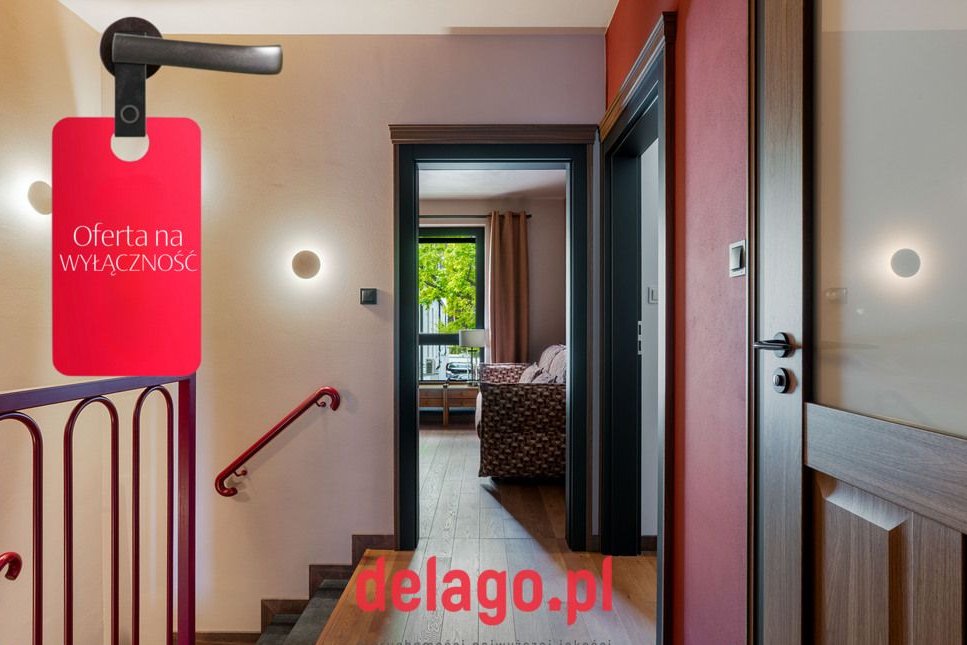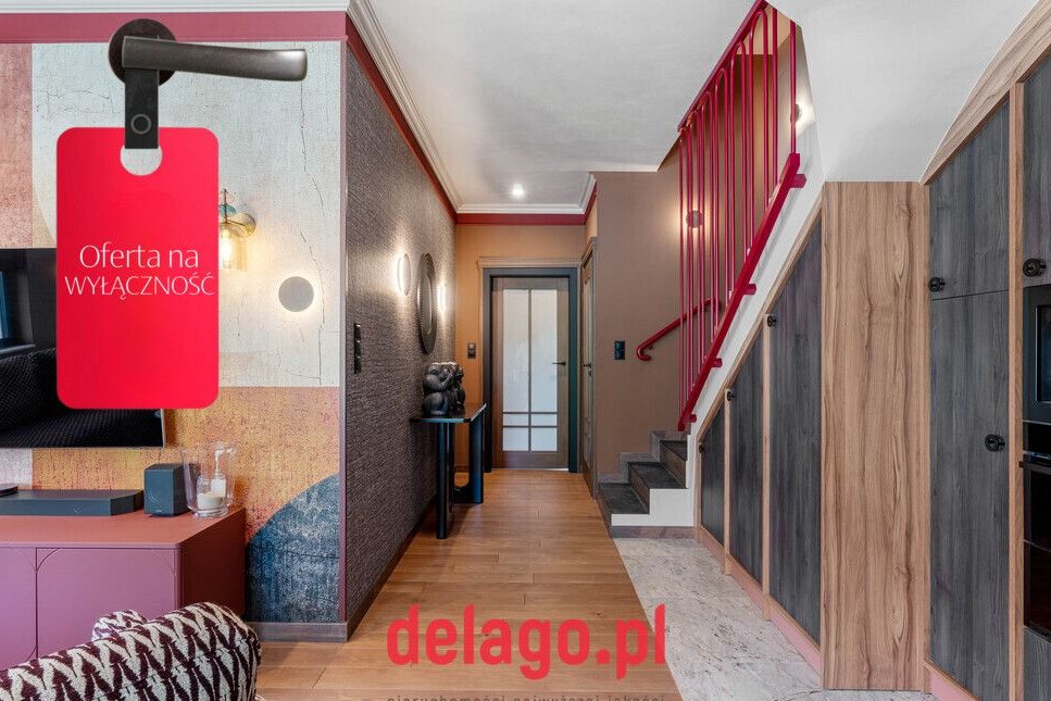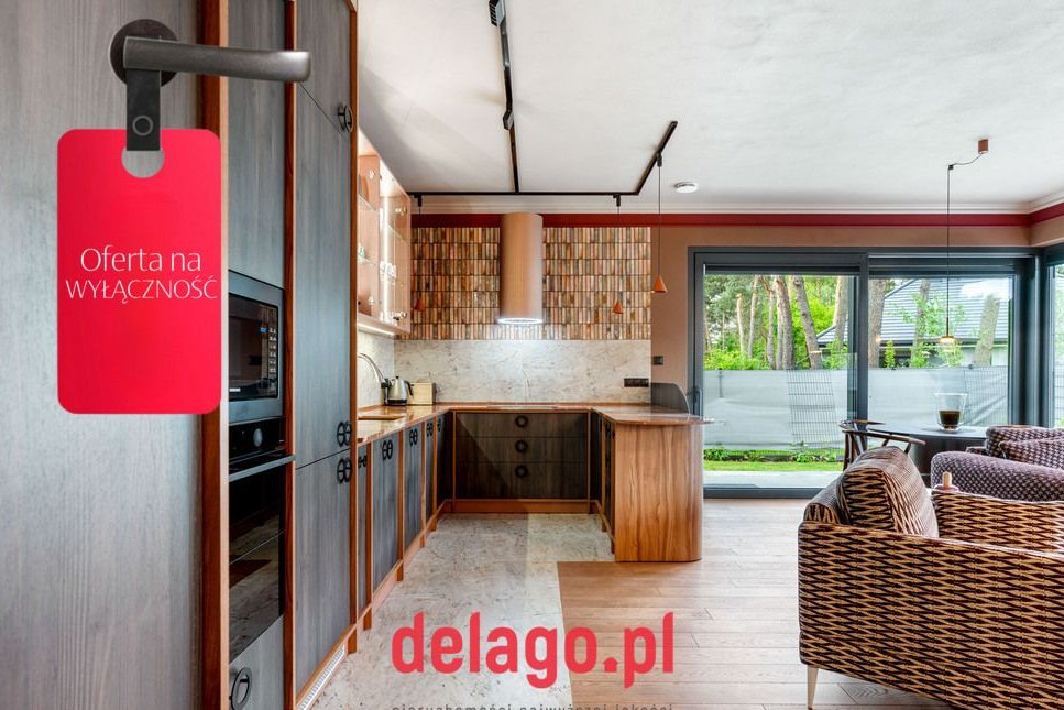 Nieruchomość doskonale przemyślana pod kątem rozkładu pomieszeszeń i funkcjonalności. Wnętrza oraz ogród z tarasem zaprojektowane przez architekta według indywidualnego pomysłu z dużym smakiem i wykończony materiałami najwyższej jakości. Liczne przeszklenia znakomicie doświetlają przestronne i bardzo stylowe wnętrza. Ideą projektu było zapewnienie mieszkańcom komfortu i ergonomii. Każdy metr kwadratowy powierzchni został przemyślany, aby dostarczyć przestrzeń najwyższej jakości. Podłoga z najwyższej klasy dębiny, kamienne blaty oraz skrupulatnie dobrane meble oraz elementy dekoracyjne tworzą spójną i niepowtarzalną przestrzeń, które doskonałe uzupełniają dodatki o pasującej kolorystyce. Łazienki i kuchnia zostały wyposażone w najwyższej klasy sprzęt AGD i armaturę. Nieruchomość posiada ogrzewanie podłogowe strefowe, klimatyzację, system rekuperacji wraz z wentlacją mechaniczną, pompę ciepła oraz przygotowaną instalację pod panele fotowoltaiczne. Prezentowany dom wyróżnia sie również bardzo spójnym projektem ogrodu z licznymi nasadzeniami oraz dużym tarasem z ekpozycją południową.