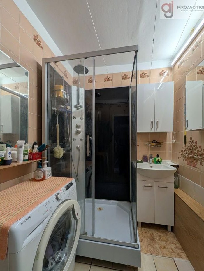 - łazienki z kabiną prysznicową z hydromasażem, umywalką, pralką o pow. 2,94 mkw.;