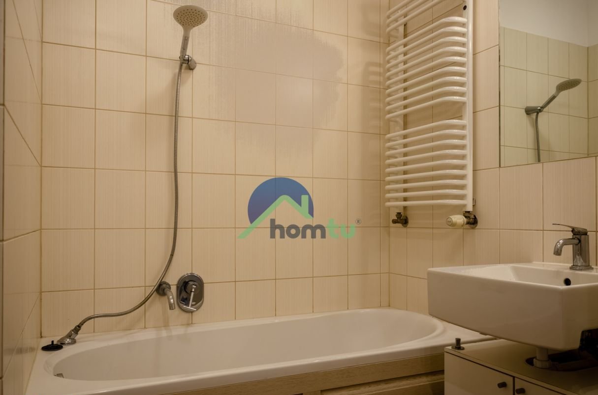 Ładnie wykończona łazienka wyposażona jest w wannę, w której możesz wziąć długą, relaksującą kąpiel lub szybki prysznic przed wyjściem do pracy. Spodoba Ci się pewnie duże lustro i dodatkowe oświetlenie nad nim.