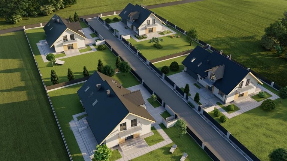 - Docelowo pięć wyjątkowych, wolnostojących domów na działkach o powierzchni od 900 do 1000 m², co zapewnia prywatność i przestrzeń.
