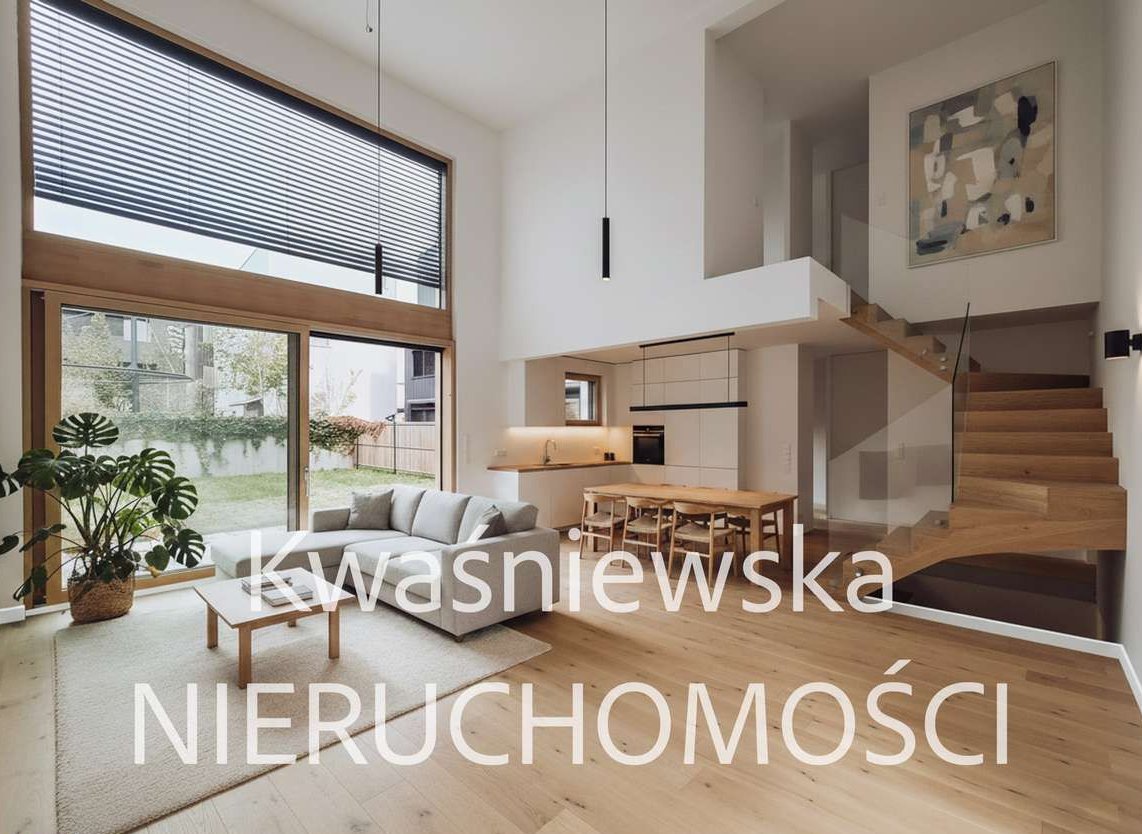 Salon z aneksem kuchennym 39 m² (dwupoziomowy), sypialnia z prywatną łazienką – idealna dla gości lub rodziców, bezpośrednie wyjście na taras i do ogrodu.