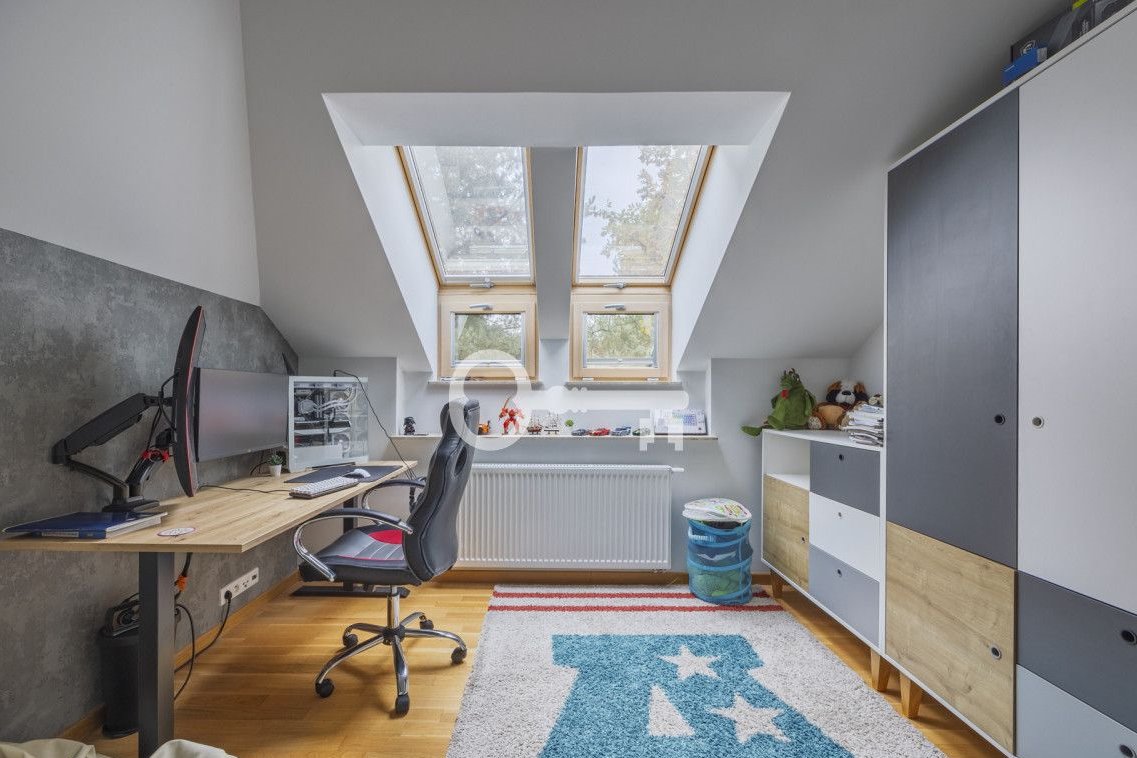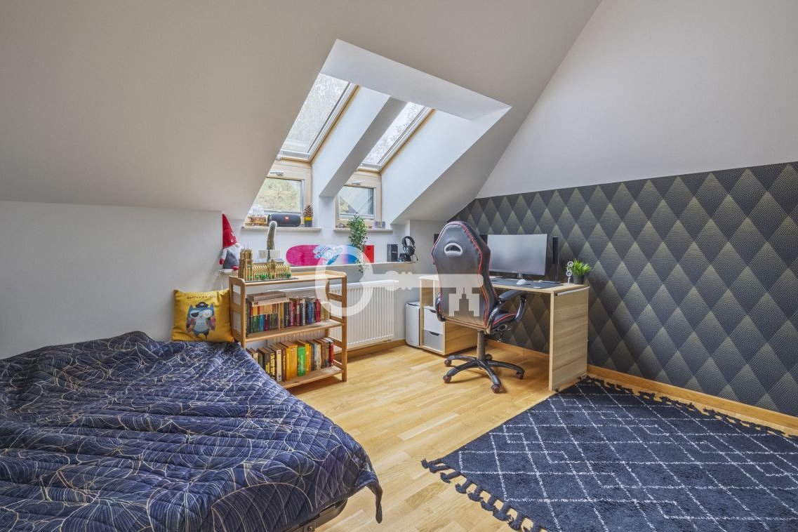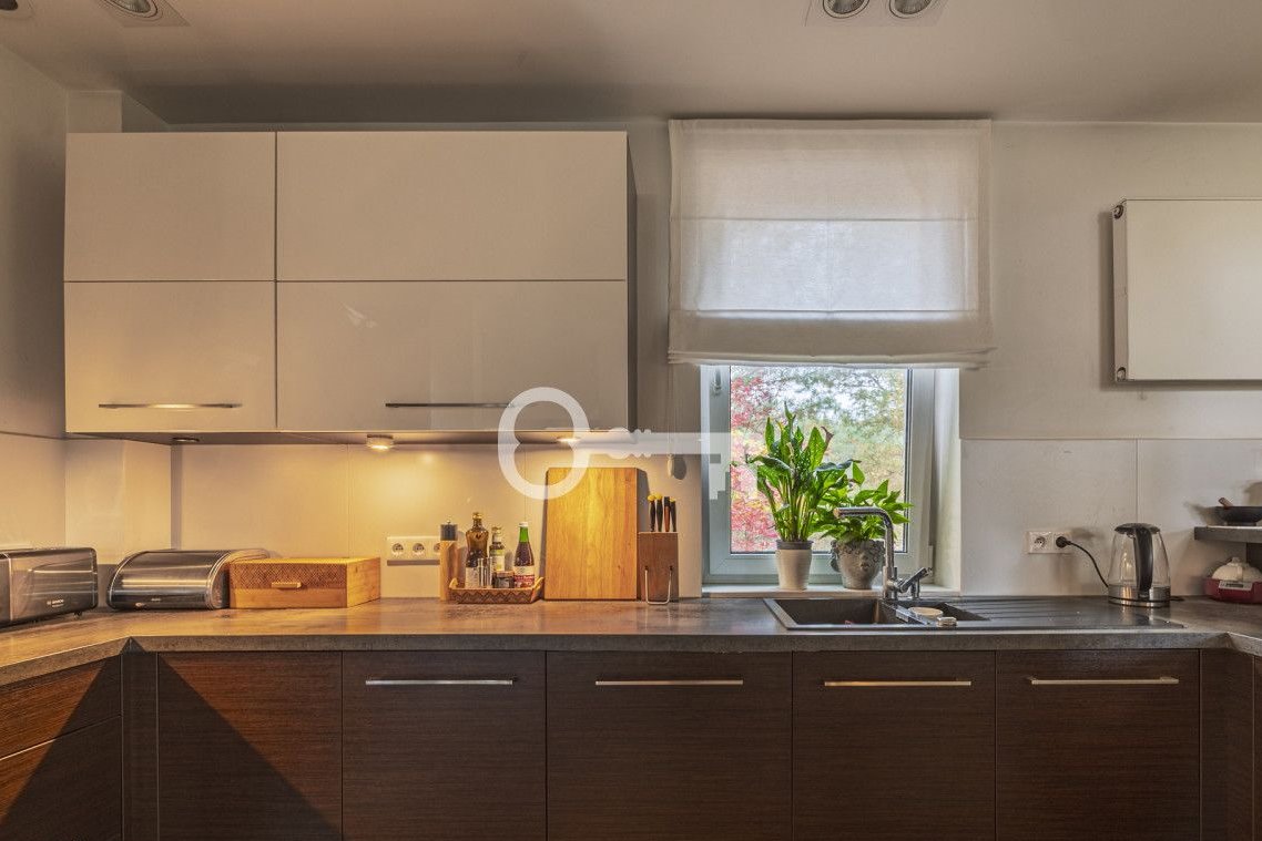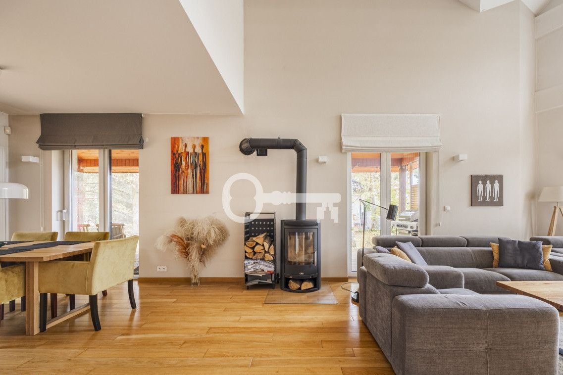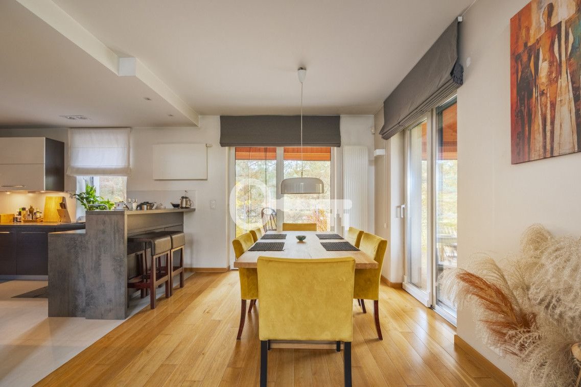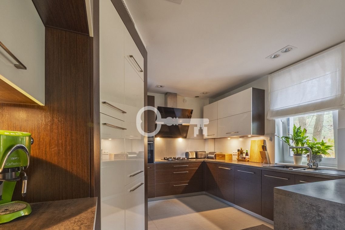 The house is in very good technical condition - finished with durable, high-quality materials. Wooden floorboards and parquet flooring. Well-lit rooms. Wooden terrace. Automatic garden irrigation. Spacious single garage and carport for an additional car. Garden shed in the garden. An intimate, gated community of single-family houses surrounded by greenery.
