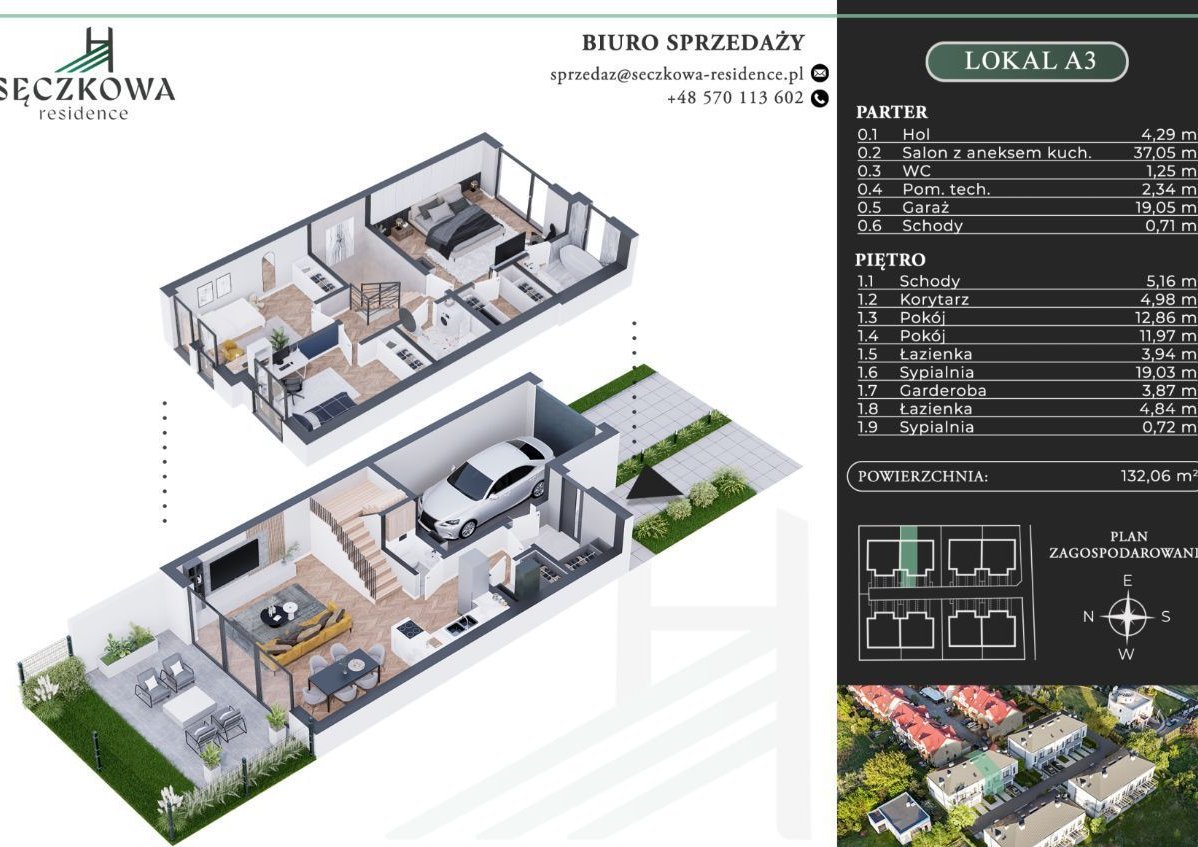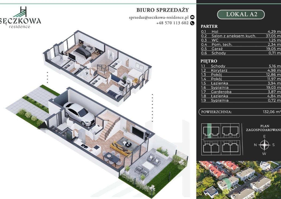Mieszkania w Sęczkowa Residence oferują przestrzeń (132m2) i komfort na najwyższym poziomie. Każdy lokal posiada własny balkon, taras oraz prywatny ogród, co pozwala cieszyć się świeżym powietrzem i relaksem na własnej przestrzeni na zewnątrz. Duże okna zapewniają doskonałe doświetlenie wnętrz, tworząc jasne i przyjemne pomieszczenia. Rozkład pomieszczeń w Sęczkowa Residence został zaprojektowany przede wszystkim z myślą o komforcie i funkcjonalności. Parter pełni rolę strefy społecznej, idealnej do przyjmowania gości, podczas gdy piętro to strefa prywatna z sypialniami, gwarantująca intymność i spokój. W cenie lokalu znajduje się również poddasze o powierzchni 67,37 m2.