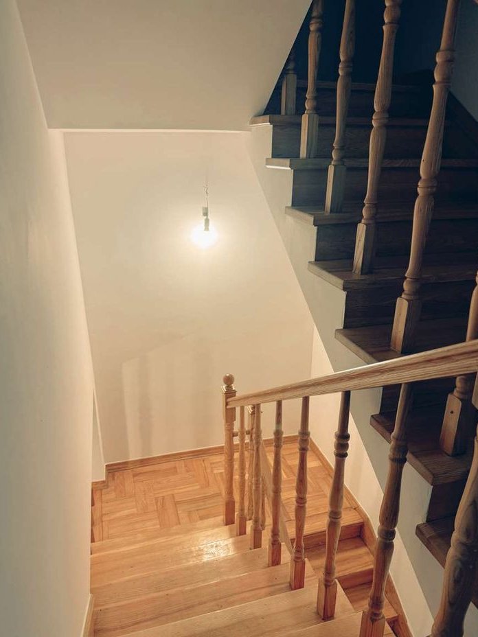 The house consists of two full floors and a usable attic, providing a comfortable separation between living and private areas.