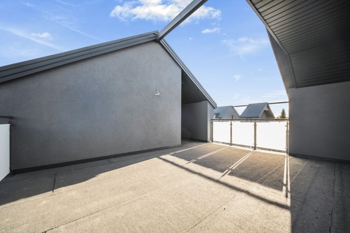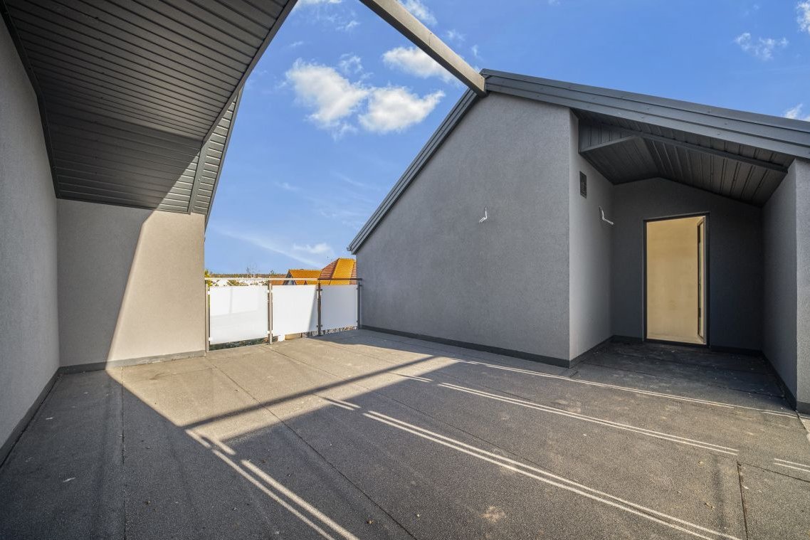 Na ostatniej kondygnacji polecamy zaprojektować przestrzeń do pracy zdalnej. Również może być to miejsce na pokój dla gości lub jako dodatkowa sypialnia. Na tej kondygnacji znajduje się również wyjście na taras, który jest częściowo zadaszony.