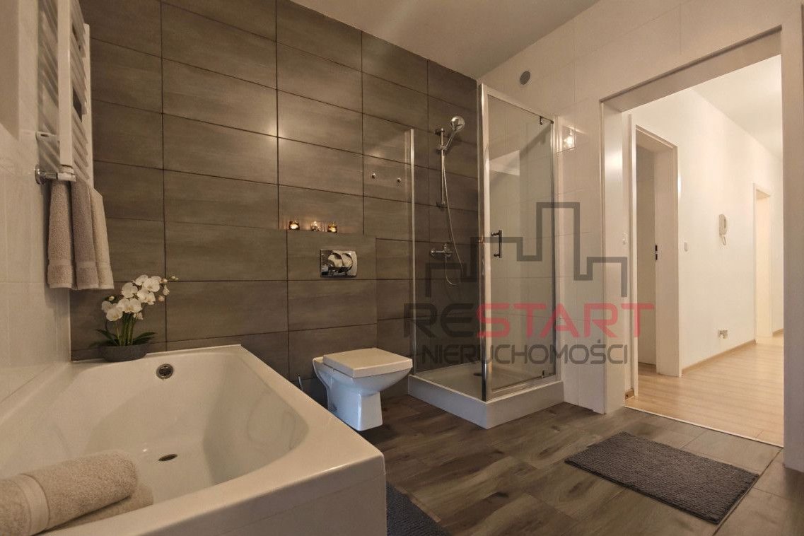 wygodna łazienka wyposażona zarówno w wannę, jak i prysznic