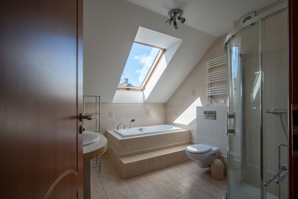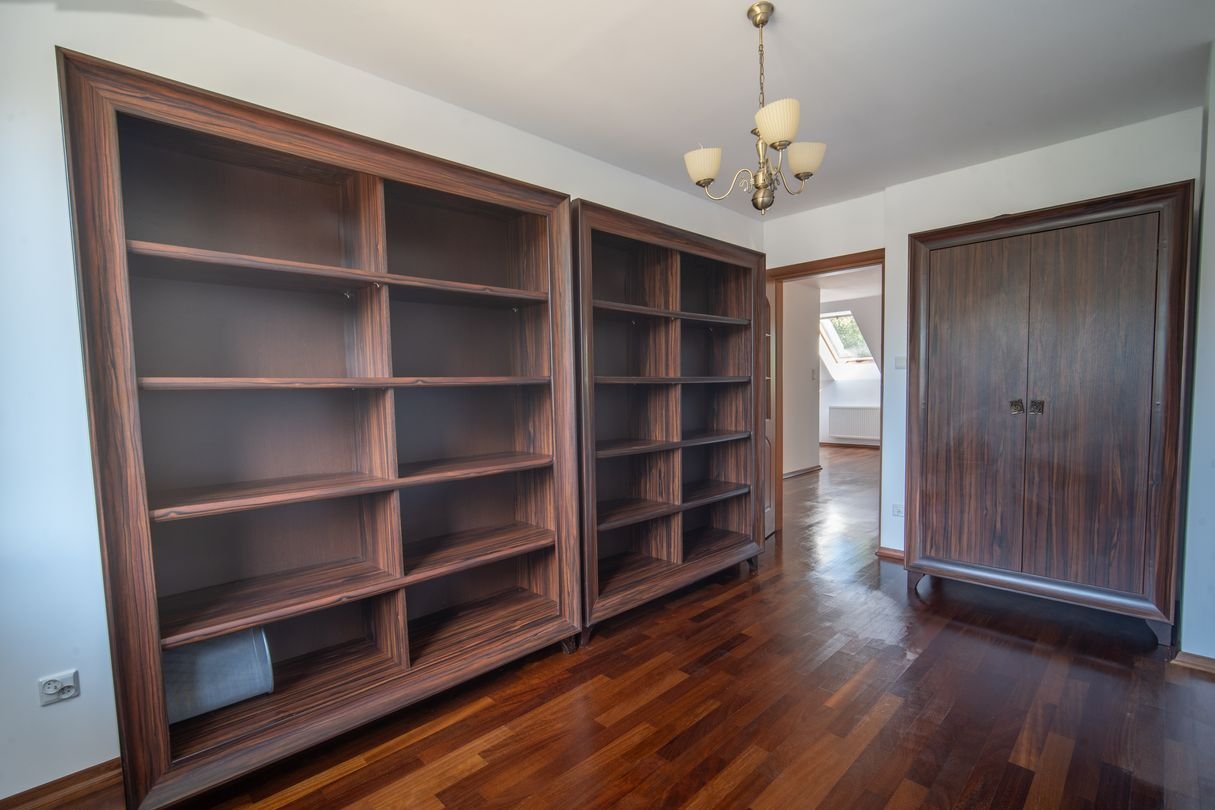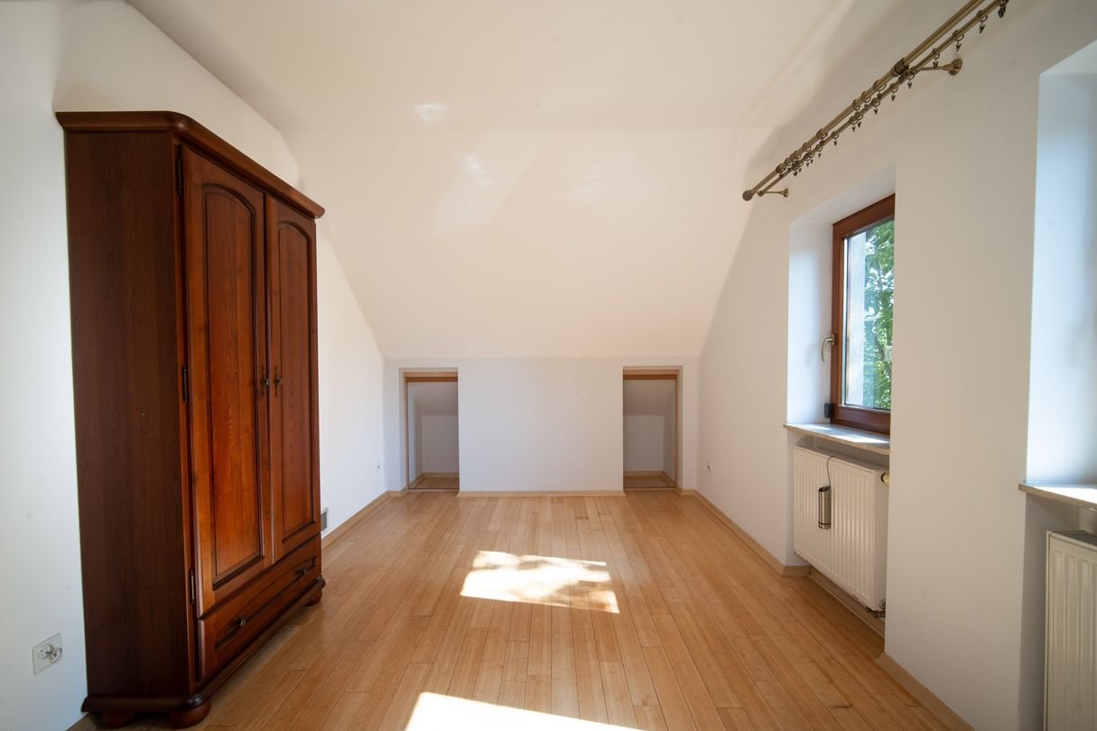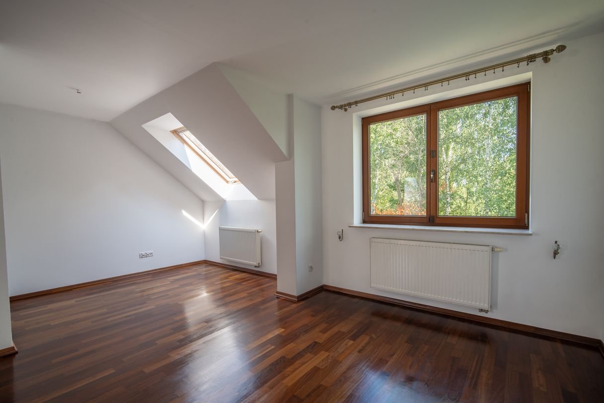 Pokój z łazienką i schowkami nad garażem sprawdzi się jako oaza dla nastolatka, sypialnia na piętrze do doskonałe miejsce na biblioteczkę. Kolejna przestrzeń idealnie sprawdzi się na adaptację jako sypialnia dla rodziców lub dwa mniejsze pokoje. Dodatkowo na piętrze oddzielna garderoba i MEGA łazienka z oknem i prysznicem oraz wanną. Pokój na poddaszu to miejsce dla Twoich gości lub pokój dla starszego dziecka.