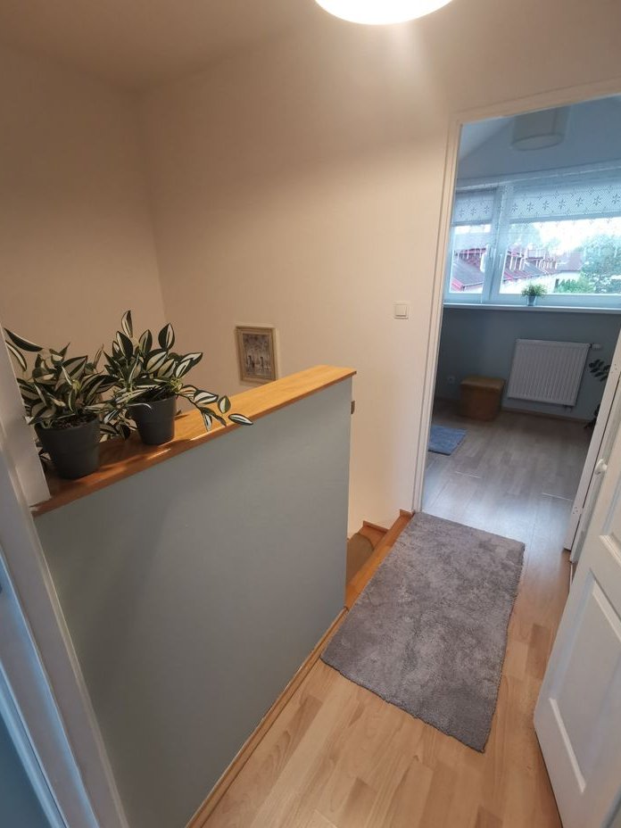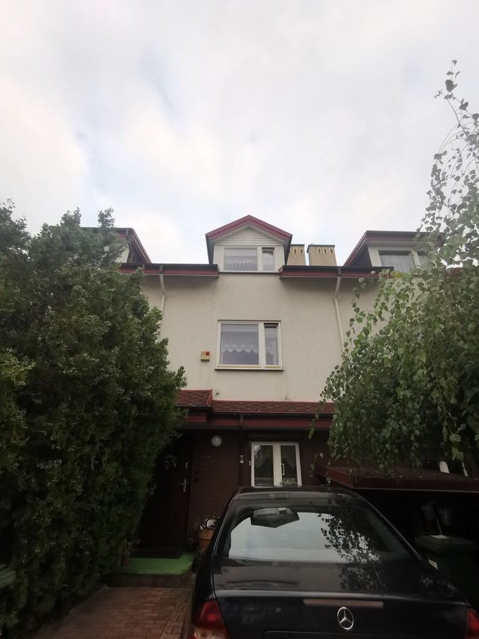 Sprzedam dom przy ulicy Saturna w zabudowie szeregowej o konstrukcji szkieletowej. W skład domu wchodzi parter: salon (22,35), kuchni (9,54), wiatrołap (1,44) i WC (1,26) podłoga panele vinylowe. Piętro: pokój (16,09), pokój (10,81), łazienka (4,37)z prysznicem. W pokojach klepka barliniecka. drugie pietro: pokój z oknami dachowymi (17,20), pokój (10,81) oraz pom.gospodarcze (2,79) na podłodze panele. Okna drewniane, ogrzewanie domu gazowe oraz kominek. Z salonu wyjscie na mały ogródek z tarasem, markiza. Przed domem komórka oraz miejsce na samochód. Miejsce na drugi przynależne do domu na terenie ogrodzonego osiedla. Brama osiedlowa na pilota oraz telefon.Przed osiedlem przystanek autobusowy 739 do metra Wilanowska.Pełna infrastruktura sklepik osiedlowy, Centrum Handlowe Józefosław, Auchaun, Leroy Merlin, OBI, SanPark Piaseczno, Castorama, Agata Meble w budowie, przedszkola, żłobki, szkoły podstawowy, przychodnie, apteki.