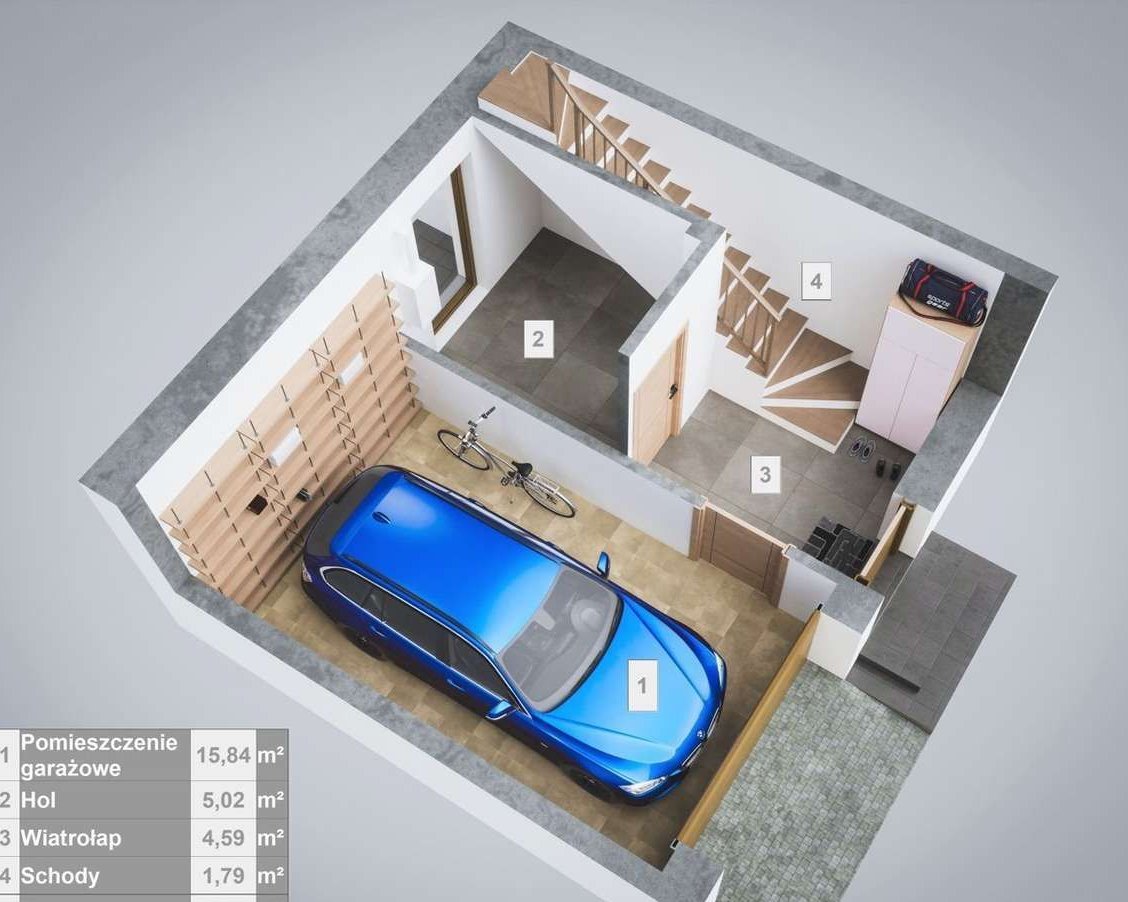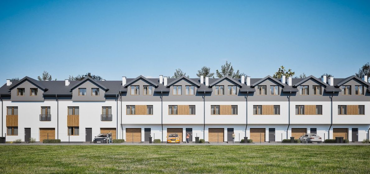 Każdy Segment posiada garaż, miejsce parkingowe oraz prywatym ogrodem