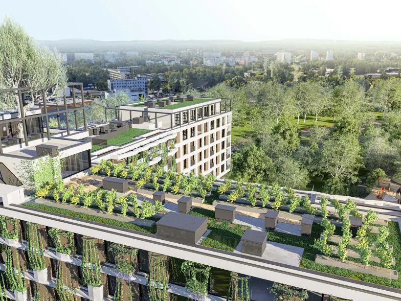 Sam budynek położony będzie przy nowym parku, który jest centralną częścią całej inwestycji oraz przy istniejącym już parku miejskim przy ulicy Leopolda.