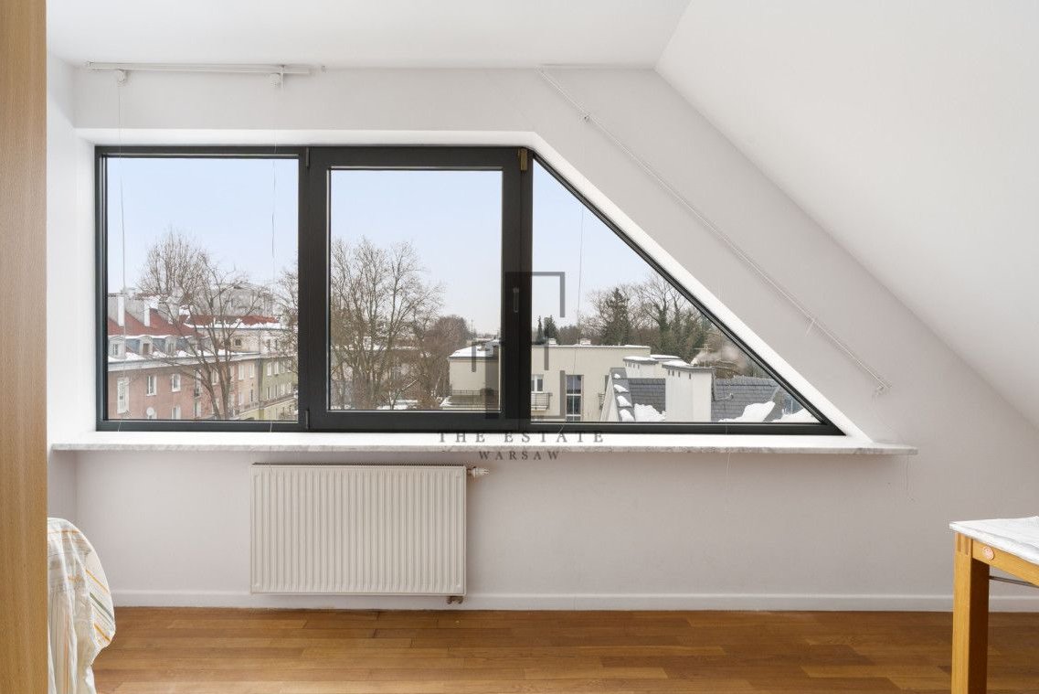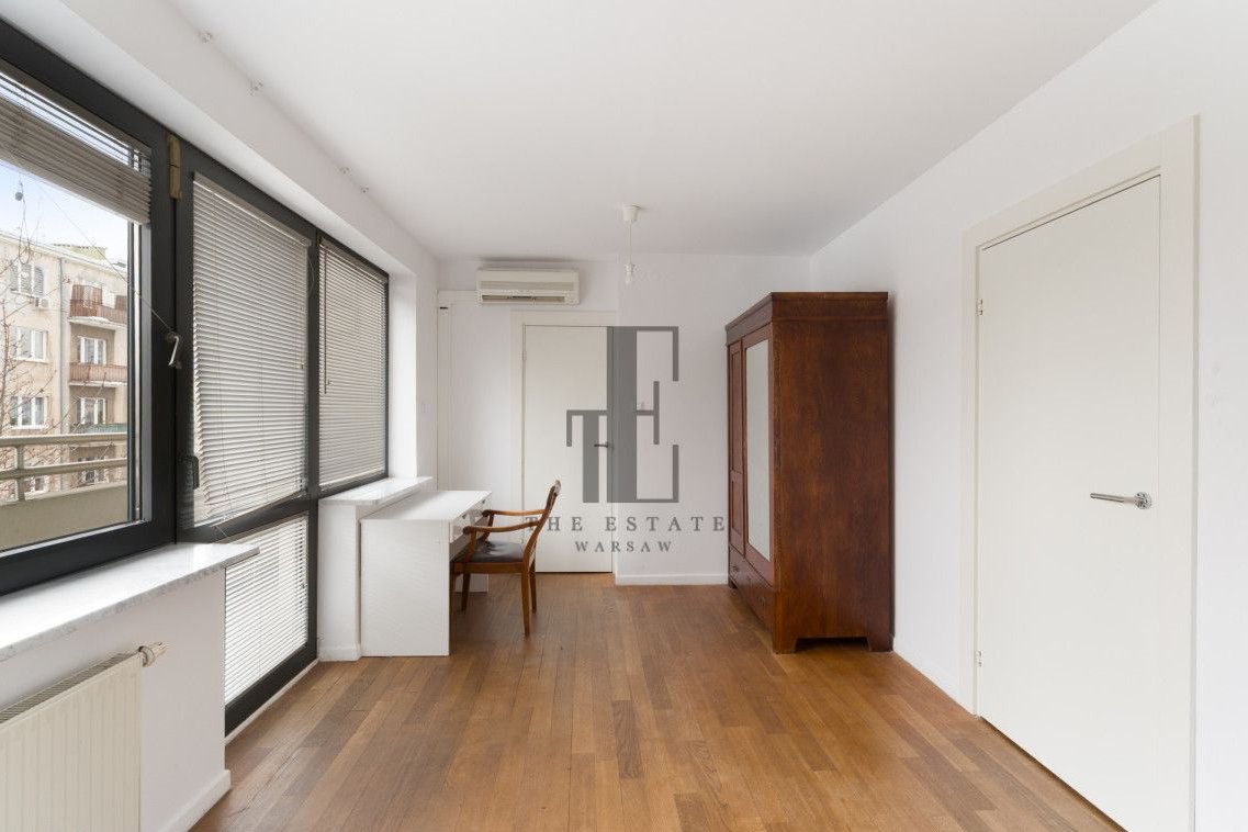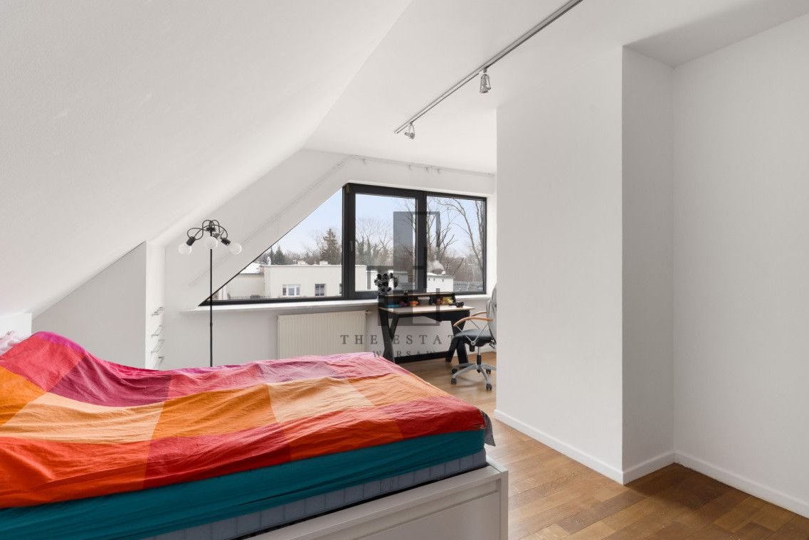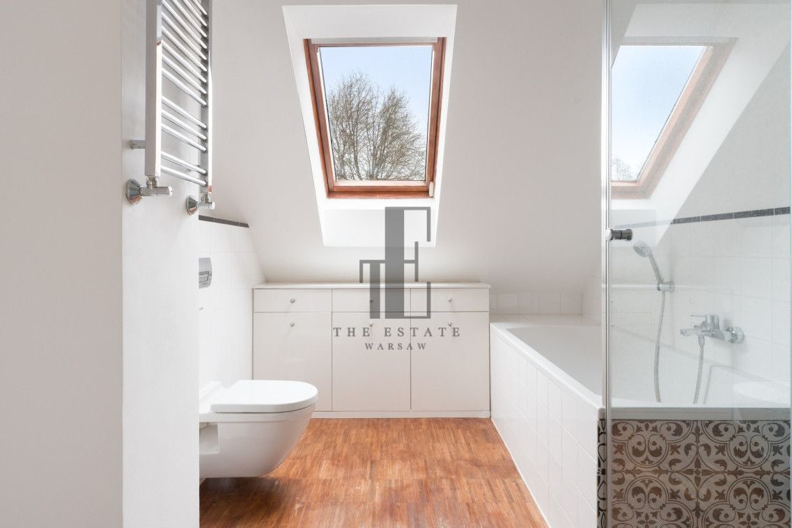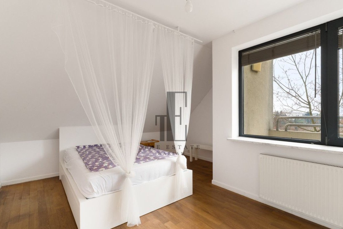 Elegancki apartament dwupoziomowy zlokalizowany w niewielkim apartamentowcu z początku lat 2000, w którym znajduje się tylko osiem mieszkań. Lokal zajmuje trzecie i czwarte — najwyższe — piętro budynku i charakteryzuje się ekspozycją na wschód oraz zachód. Posiada monitoring i jest na ogrodzonej posesji.