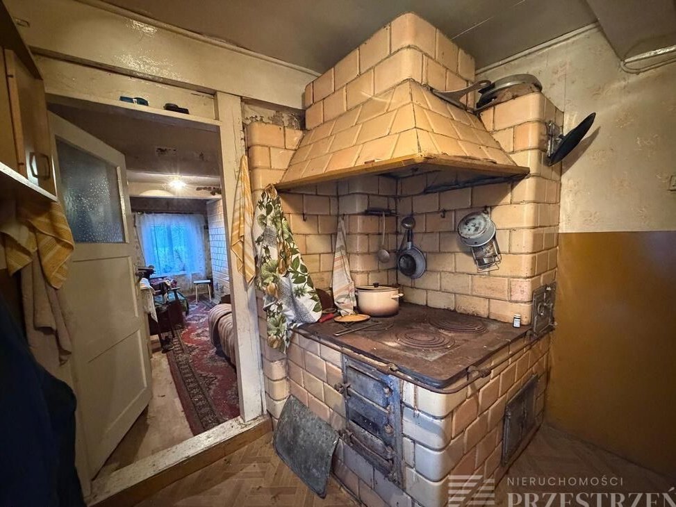 W środku zachowana kuchnia z żeliwnym paleniskiem oraz piece kaflowe.