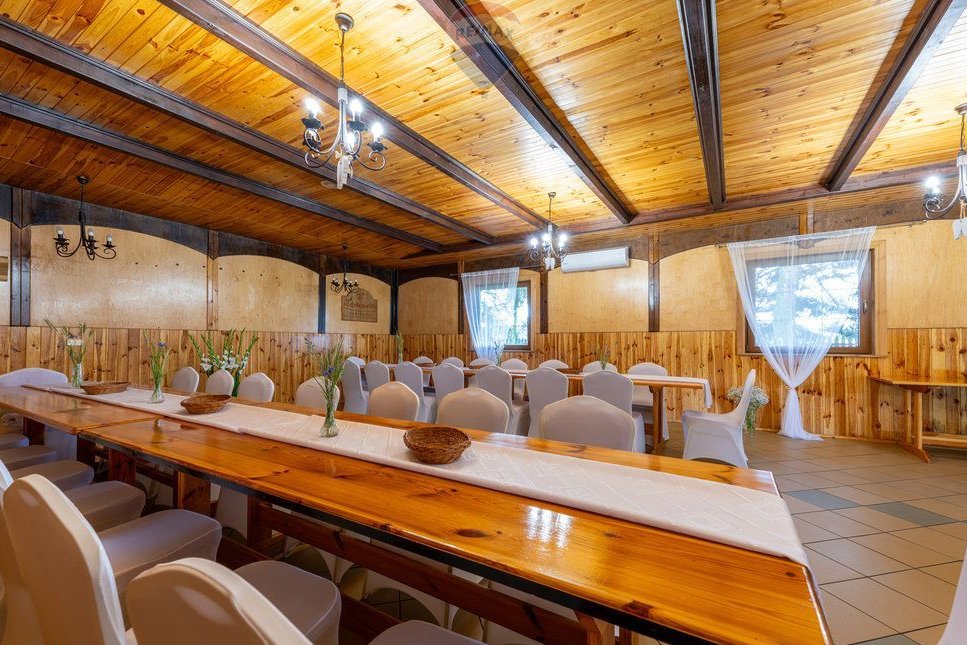 • Zabudowania użytkowe, w tym w pełni wyposażona sala weselna z zapleczem gastronomicznym, altana taneczna, a także budynki gospodarcze – gotowe do natychmiastowego wykorzystania lub lekkiego odświeżenia.