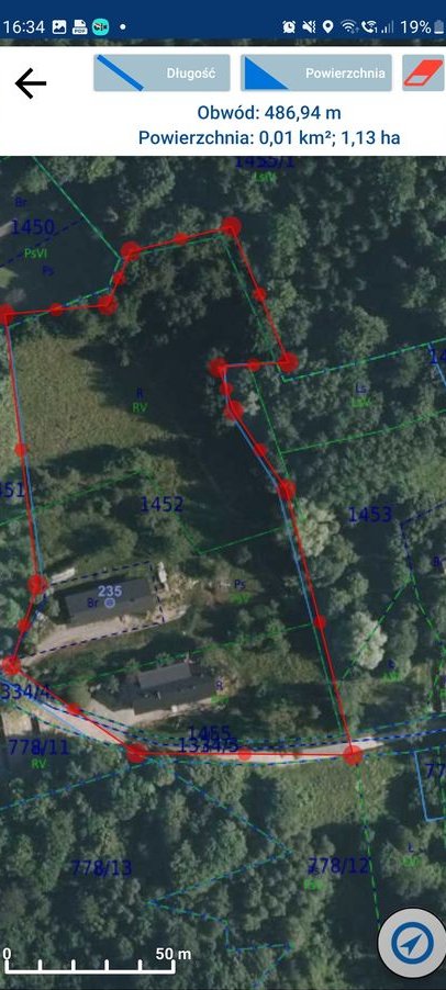 - obszar nieruchomości oświetlony