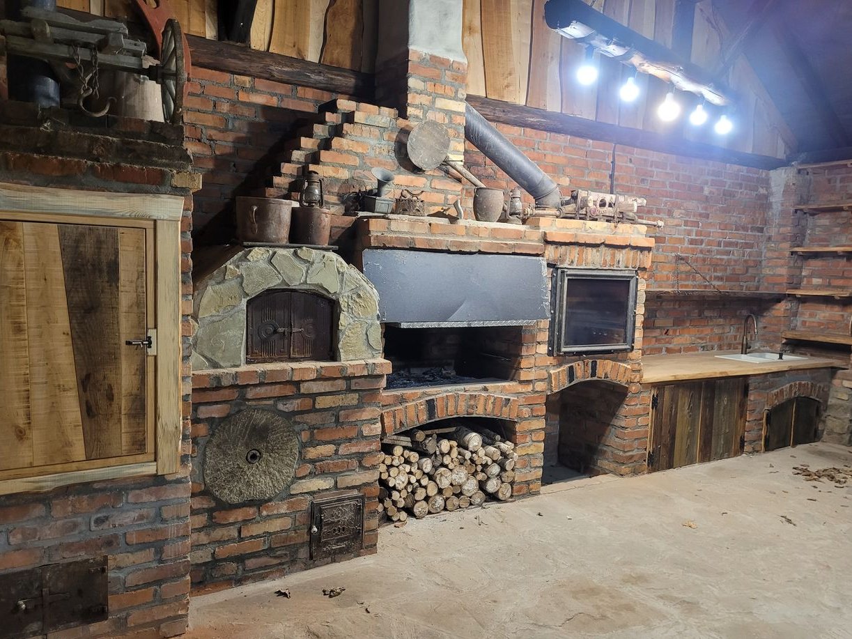 Ściany posadzki kamienne gril palenisko wędzarnia oraz piec chlebowy lub do pizzy z cegly