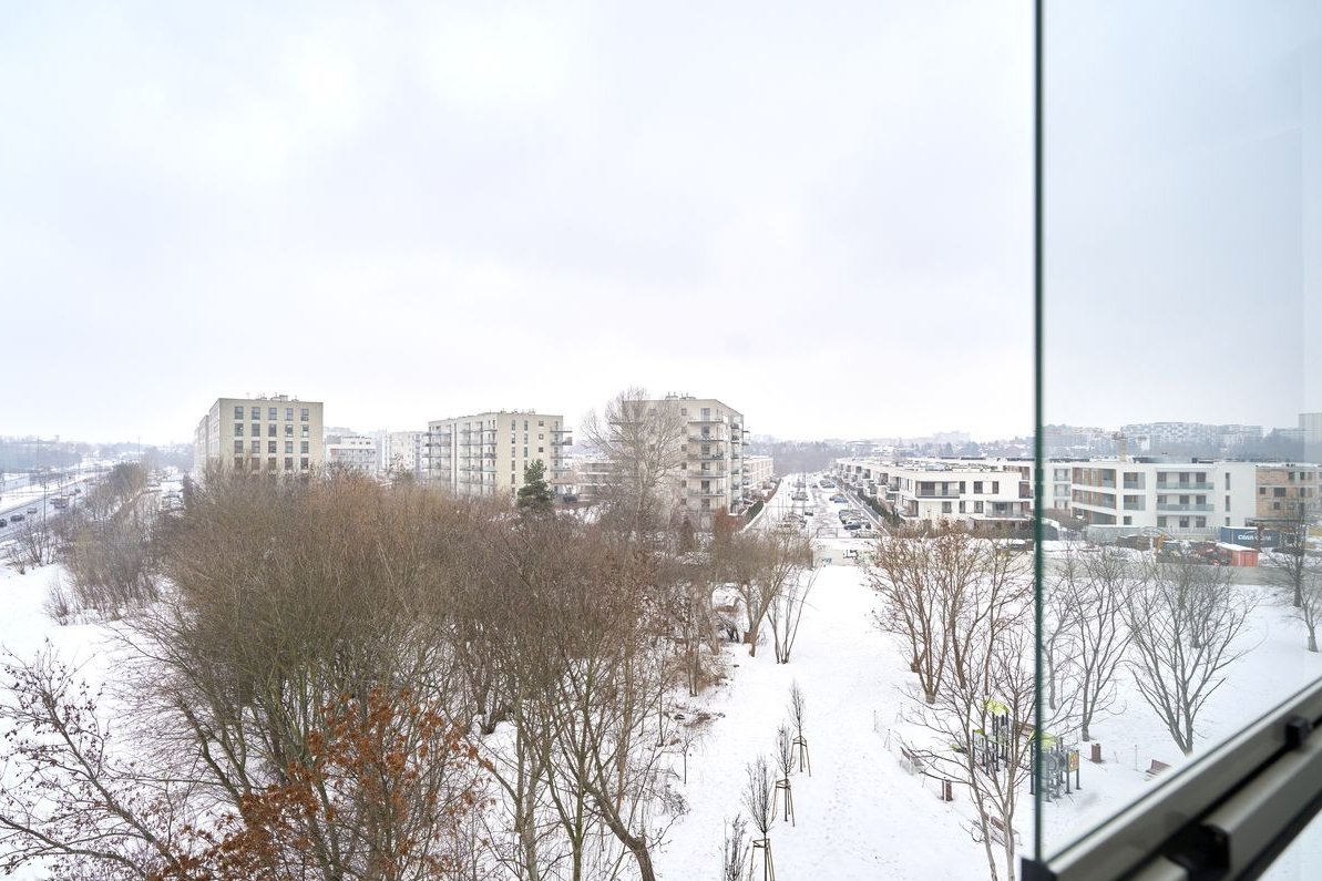Zabudowana szkłem loggia (5,72 m²), zapewniająca prywatną przestrzeń z której wyłania się widok na ogromną przestrzeń ponad drzewami, co sprawia, że samo mieszkanie staje się jeszcze bardziej przestronne