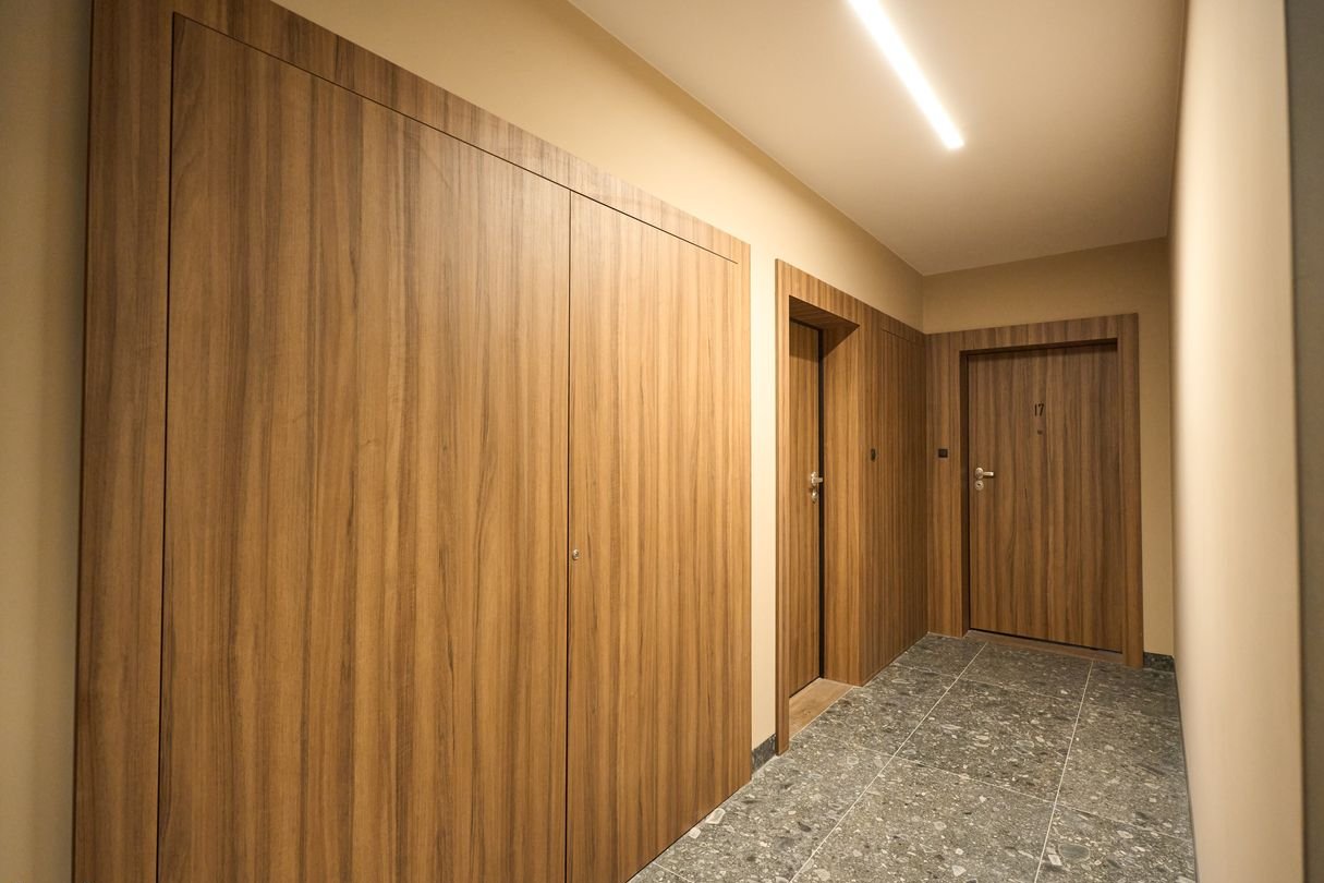 Nowoczesny budynek z windą i garażem podziemnym, estetyczne części wspólne oraz funkcjonalne części komunikacyjne.