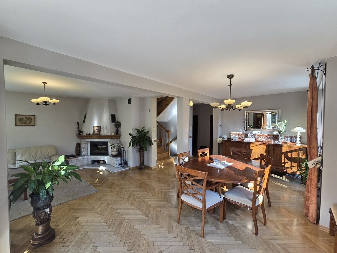 Powierzchnia domu 133,7m2 tj. parter i piętro, do tej powierzchni trzeba doliczyć piwnicę, w której znajduje się garaż 1-stanowiskowy, pokój rekreacyjny z kominkiem i pokój gier oraz kotłownia.