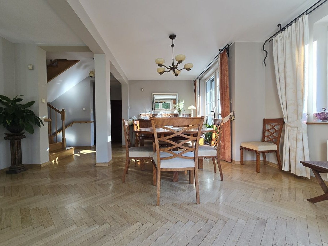 parter- strefa dzienna (salon), bardzo dobrze doświetlony, słońce jest cały dzień. Wyjście na taras i do ogrodu. Kuchnia zamknięta, w zabudowie wraz ze sprzętem AGD. Oraz korytarz, wiatrołap i toaleta.