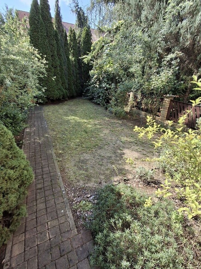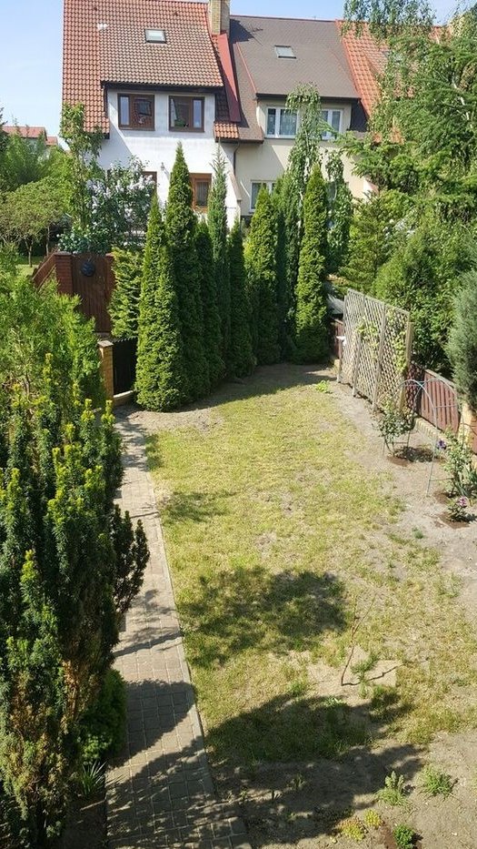 Działka zagospodarowana, z licznymi nasadzeniami. Możliwość wejścia do budynku zarówno od frontowej części jak i od ogrodu.