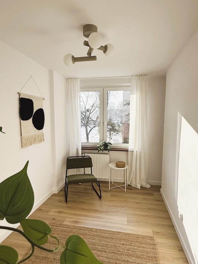 Idealny układ pomieszczeń, 3 pokoje na 47 metrach, z czego każdy pokój jest widny i ustawny. Do tego kuchnia, również z oknem, połączona z salonem.