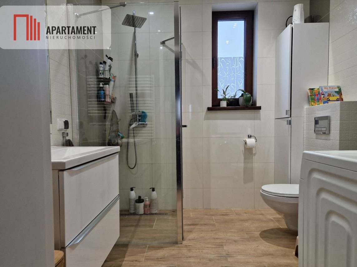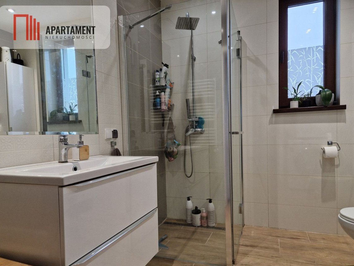 Na powierzchnię mieszkalną składa się kuchnia z oknem otwarta na salon, 2 sypialnie, łazienka z prysznicem i przedpokój. Mieszkanie jest zaledwie kilkuletnie i zostało wykończone nowoczesnymi materiałami wysokiej jakości. Na ścianach wykonane są gładzie gipsowe, płytki i inne materiały dekoracyjne widoczne na zdjęciach. Na podłogach w przedpokoju, łazience i aneksie kuchennym są położone płytki ceramiczne, a w pokojach panele. W przedpokoju i sypialni wykonane zostały pojemne szafy w zabudowie. Wszystkie okna są plastikowe trzyszybowe w kolorze ciemny orzech z roletami wewnętrznymi. Własne ogrzewanie gazowe wykonane w nowoczesnej technologii. W przedpokoju i łazience jest ogrzewanie podłogowe, a w pozostałych pomieszczeniach kaloryfery. Dostępne media to: prąd 230V, woda z sieci, gaz ziemny i kanalizacja.