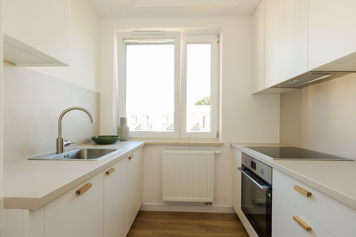 We present a cozy, ready-to-move-in apartment in the modern Studio Okęcie development in Warsaw's Włochy district, in the immediate vicinity of Chopin Airport and the transport hub at Żwirki i Wigury Street. No commission, no agents, from the owner. A great opportunity for rental.