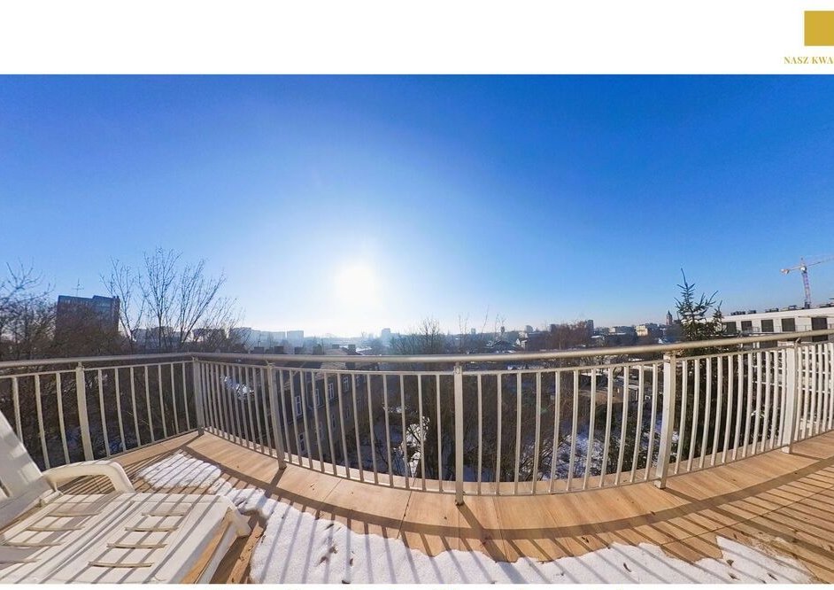 Z okien oraz tarasu rozpościera się piękny widok na korony drzew oraz położoną w oddali Manufakturę.